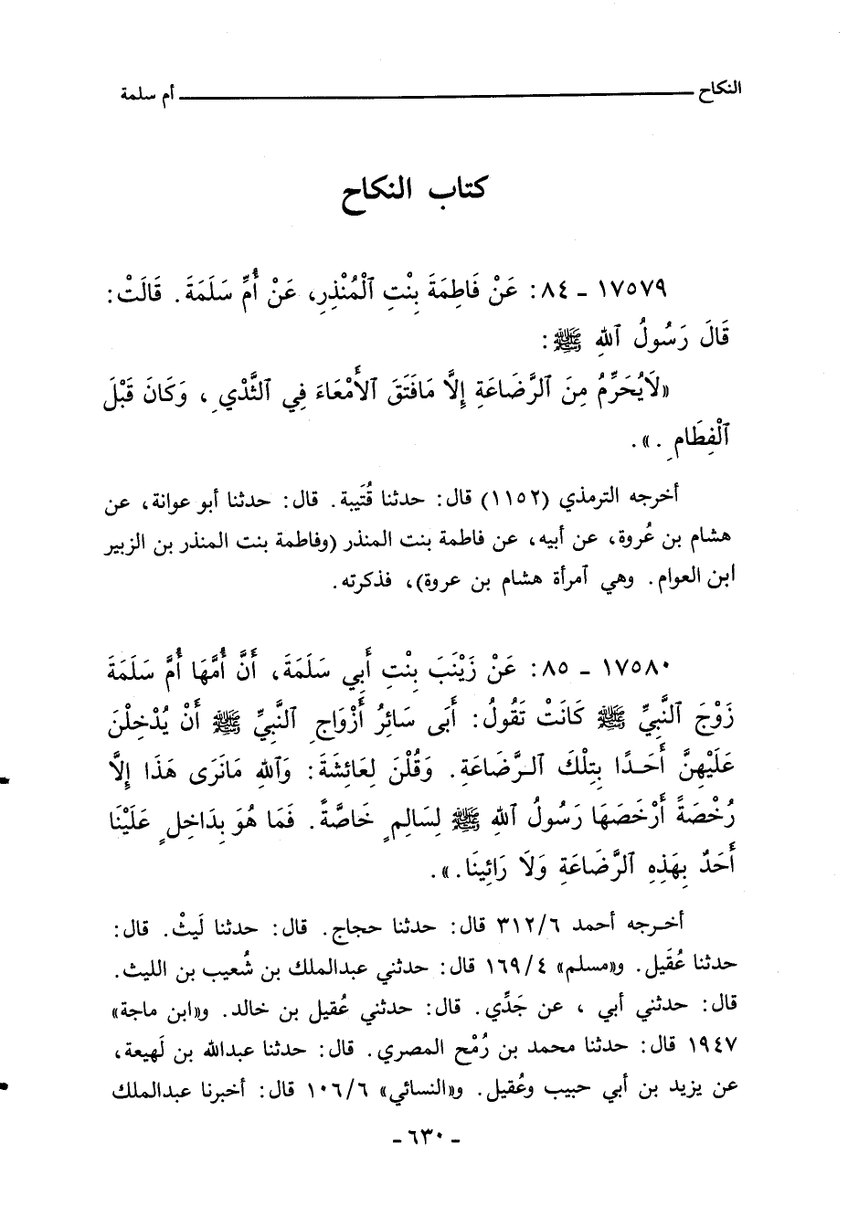 ١٧٥٨٠ - عَنْ زَيْنَبَ بِنْتِ أبي سَلَمَةَ، أَنَّ اُمَّهَا أم سَلَمَةَ زَوْجَ النَّبيِّ صلى الله عليه وسلم كَانَتْ تَقُولُ: ابَى سَائِرُ ازْوَاجِ النَّبِيِّ صلى الله عليه وسلم أَنْ يُدْخِلْنَ عَلَيْهِنَّ احَدًا بِتِلْكَ الرَّضَاعَةِ. وَقُلْنَ لِعَائِشَةَ: وَاللَّهِ مَانَرَى هَذَا إِلا رُخْصَةً ارْخَصَهَا رَسُولُ اللهِِ صلى الله عليه وسلم لِسَالِمٍ خَاصَّةً. فَمَا هُوَ بِدَاخِلٍ عَلَيْنَا احَدٌ بِهَذِهِ الرَّضَاعَةِ وَلا رَائِينَا.