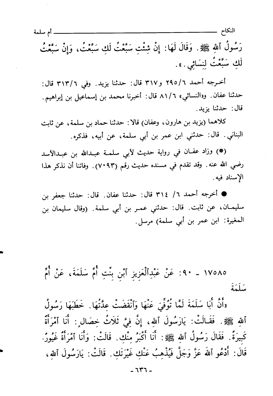 - وزاد عفان في رواية حديث لأبي سلمة عبد الله بن عبد الأسد رضي الله عنه. وقد تقدم في مسنده حديث رقم (٧٠٩٣). وفاتنا ان نذكَر هذا الإِسناد فيه.