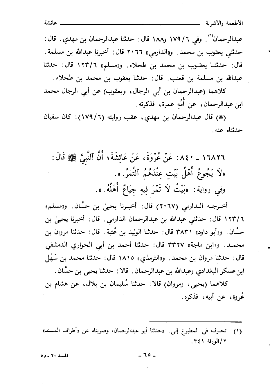 عبد الرحمن بن مهدي. قال: حدثني يعقوب بن محمد. و"الدارِمِي" ٢٠٦٦ قال: أخبرنا عبد اللهِ بن مسلمة. قال: حدثنا يعقوب بن محمد بن طحلاء. و"مسلم" ٦/ ١٢٣ قال: حدثنا عبد الله بن مسلمة بن قعنب. قال: حدثنا يعقوب بن محمد بن طحلاء.
