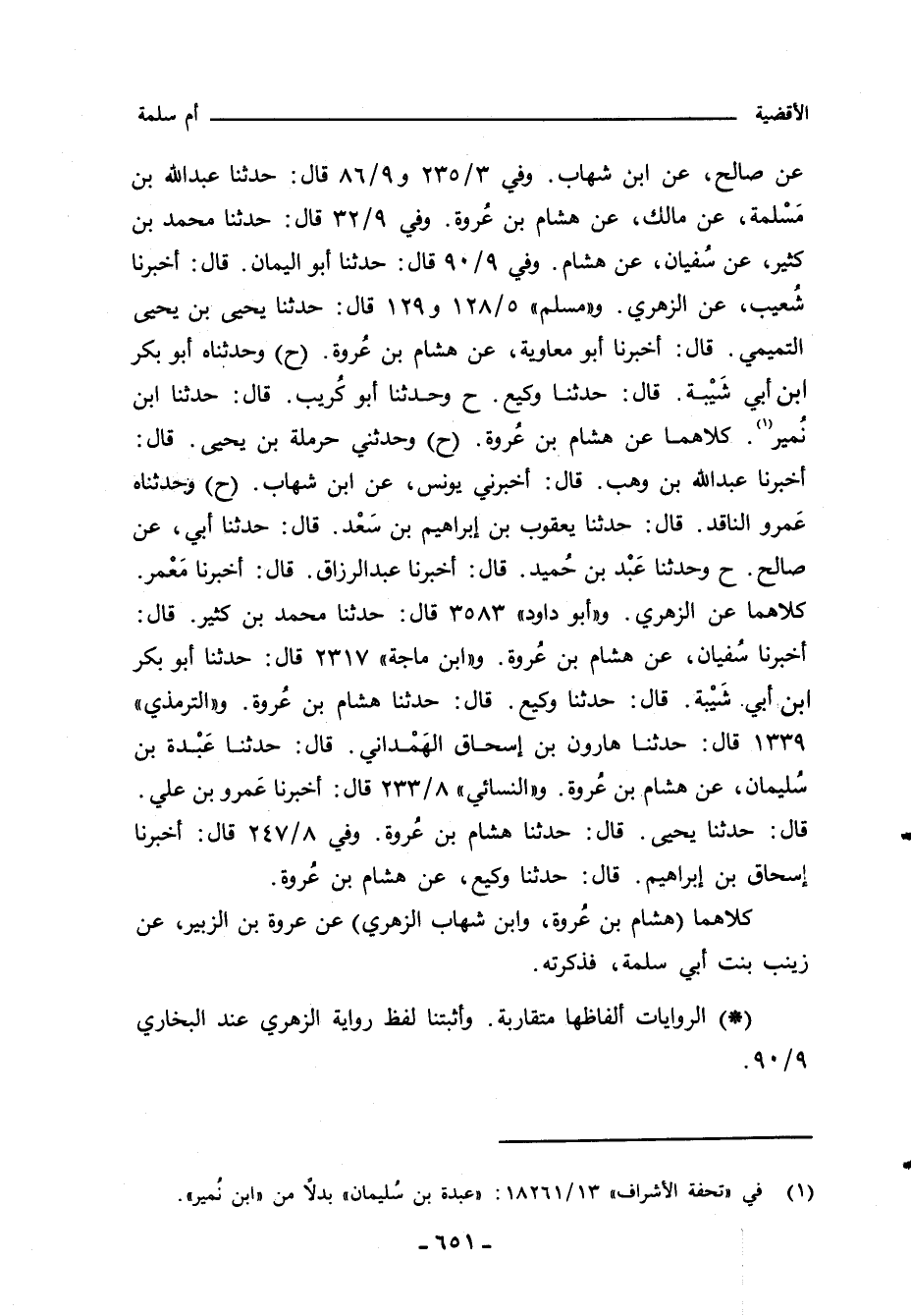 عن صالح، عن ابن شهاب. وفي ٣/ ٢٣٥ و ٩/ ٨٦ قال: حدثنا عبد الله بن مَسْلمة، عن مالك، عن هشام بن عُروة. وفي ٩/ ٣٢ قال: حدثنا محمد بن كثير، عن سُفيان، عن هشام. وفي ٩/ ٩٠ قال: حدثنا أبو اليمان، قال: أخبرنا شُعيب، عن الزهري. و"مسلم" ٥/ ١٢٨ و ١٢٩ قال: حدثنا يحيى بن يحيى التميمي، قال: أخبرنا أبو معاوية، عن هشام بن عُروة (ح) وحدثناه أبو بكر بن أبي شَيْبة، قال: حدثنا وكيع. ح وحدثنا أبو كُريب، قال: حدثنا ابن نُمير. كلاهما عن هشام بن عُروة (ح) وحدثني حرملة بن يحيى، قال: أخبرنا عبد الله بن وهب، قال: أخبرني يونس، عن ابن شهاب (ح) وحدثناه عَمرو الناقد، قال: حدثنا يعقوب بن إبراهيم بن سَعْد، قال: حدثنا أبي، عن صالح. ح وحدثنا عَبْد بن حُميد، قال: أخبرنا عبد الرزاق، قال: أخبرنا مَعْمر. كلاهما عن الزهري. و"أبو داود" ٣٥٨٣ قال: حدثنا محمد بن كثير، قال: أخبرنا سُفيان، عن هشام بن عُروة. و"ابن ماجة" ٢٣١٧ قال: حدثنا أبو بكر بن أبي. شَيْبة، قال: حدثنا وكيع، قال: حدثنا هشام بن عُروة. و"التِّرمِذي" ١٣٣٩ قال: حدثنا هارون بن إسحاق الهَمْداني، قال: حدثنا عَبْدة بن سُليمان، عن هشام بن عُروة. و"النَّسائي" ٨/ ٣٣٢ قال: أخبرنا عَمرو بن علي، قال: حدثنا يحيى، قال: حدثنا هشام بن عًروة.