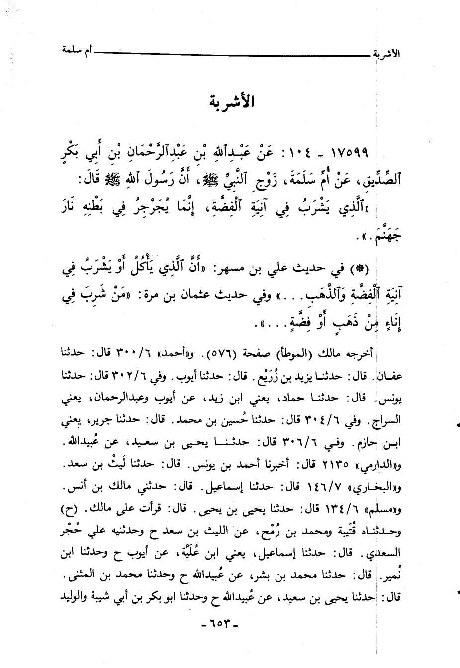 - في حديث علي بن مسهر: أَنَّ الَّذِي يَاْكُلُ اوْ يَشْرَبُ فِي انِيَةِ الْفِضَّةِ وَالذَّهَبِ. . . وفي حديث عثمان بن مرة: مَنْ شَرِبَ فِي إِنَاءٍ مِنْ ذَهَبٍ اوْفِضَّةٍ. ..