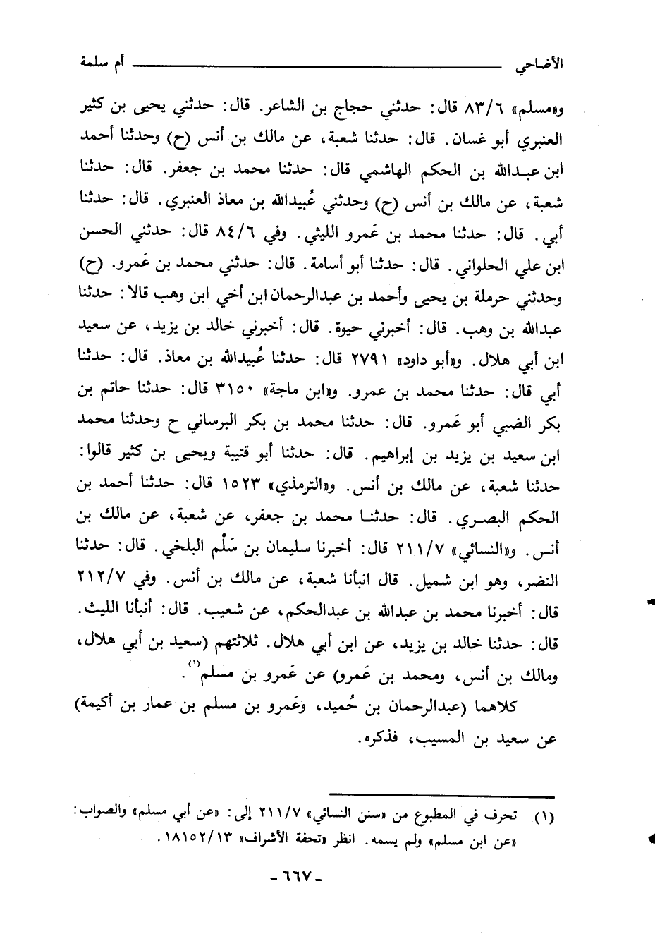 و"مسلم" ٦/ ٨٣ قال: حدثني حجاج بن الشاعر، قال: حدثني يحيى بن كثير العنبري أبو غسان، قال: حدثنا شعبة، عن مالك بن انس) ح (وحدثنا أحمد بن عبد الله بن الحكم الهاشمي قال: حدثنا محمد بن جعفر، قال: حدثنا شعبة، عن مالك بن انس) ح (وحدثني عُبيد اللهِ بن معاذ العنبري، قال: حدثنا أبي، قال: حدثنا محمد بن عَمرو الليثي. وفي ٦/ ٨٤ قال: حدثني الحسن بن علي الحلواني، قال: حدثنا أبو أُسامة، قال: حدثني محمد بن عَمرو) ح (وحدثني حرملة بن يحيى واحمد بن عبد الرحمن ابن اخي ابن وهب قالا: حدثنا عَبد اللهِ بن وهب، قال: أخبرني حيوة، قال: أخبرني خالد بن يزيد، عن سعيد بن أبي هلال. و"أبو داود" ٢٧٩١ قال: حدثنا عُبيد الله بن معاذ، قال: حدثنا أبي قال: حدثنا محمد بن عمرو. و"ابن ماجة" ٣١٥٠ قال: حدثنا حاتم بن بكر الضبي أبو عَمرو، قال: حدثنا محمد بن بكر البرساني ح وحدثنا محمد بن سعيد بن يزيد بن إبراهيم، قال: حدثنا أبو قتيبة ويحيى بن كثير قالوا: حدثنا شعبة، عن مالك بن انس. والترمذي ١٥٢٣ قال: حدثنا أحمد بن الحكم البصري، قال: حدثنا محمد بن جعفر، عن شعبة، عن مالك بن انس. و"النَّسائي" ٧/ ٢١١ قال: أخبرنا سليمان بن سَلْم البلخي، قال: حدثنا النضر، وهو ابن شميل، قال أنبأنا شعبة، عن مالك بن انس. وفي ٧/ ٢١٢ قال: أخبرنا محمد بن عبد الله بن عبد الحكم، عن شعيب، قال: أنبأنا