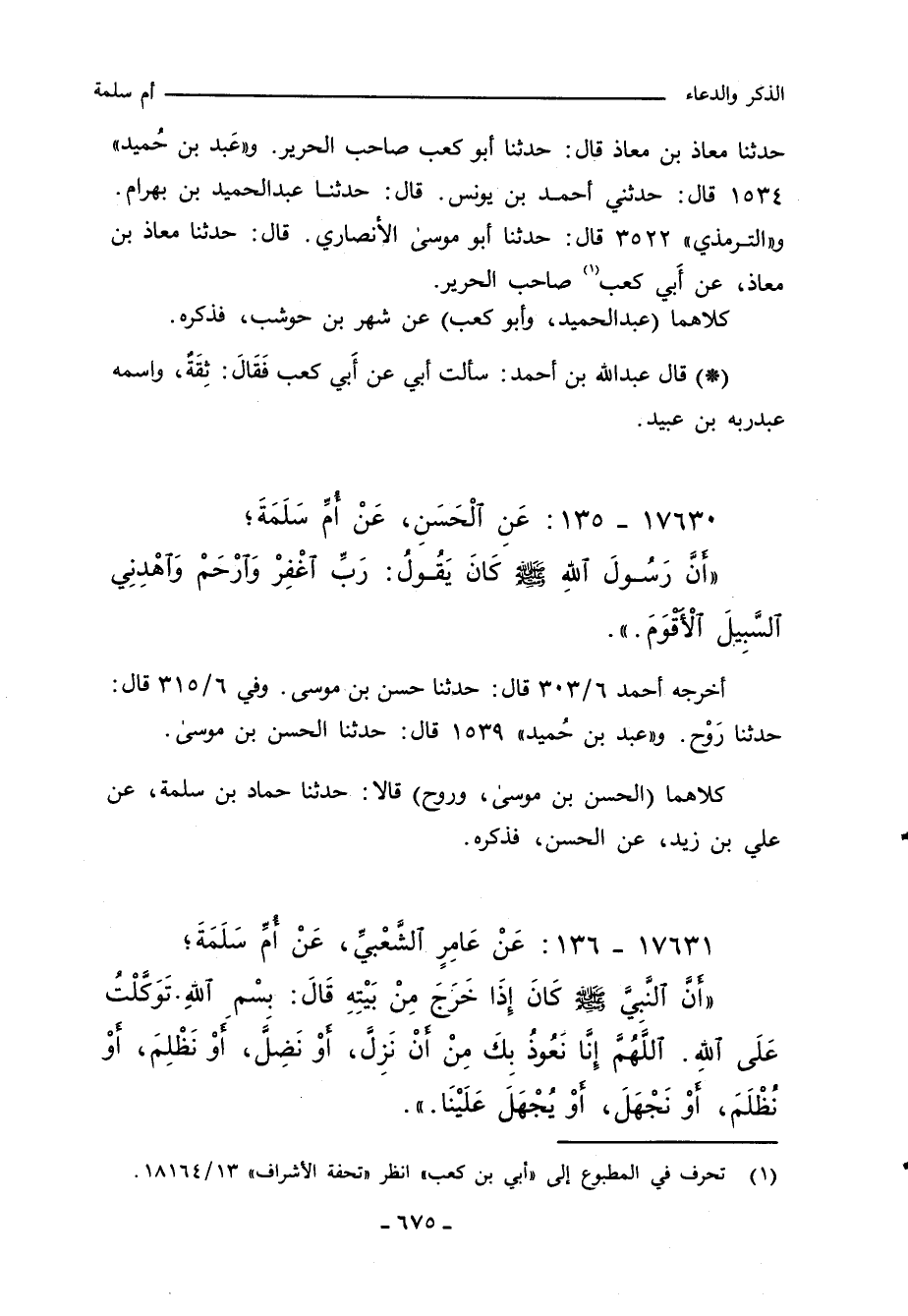 أَنَّ رَسُولَ اللهِِ صلى الله عليه وسلم كَانَ يَقُولُ: رَبِّ اغْفِرْ وَارْحَمْ وَاهْدِنِي السَّبِيلَ الاقْوَمَ.
