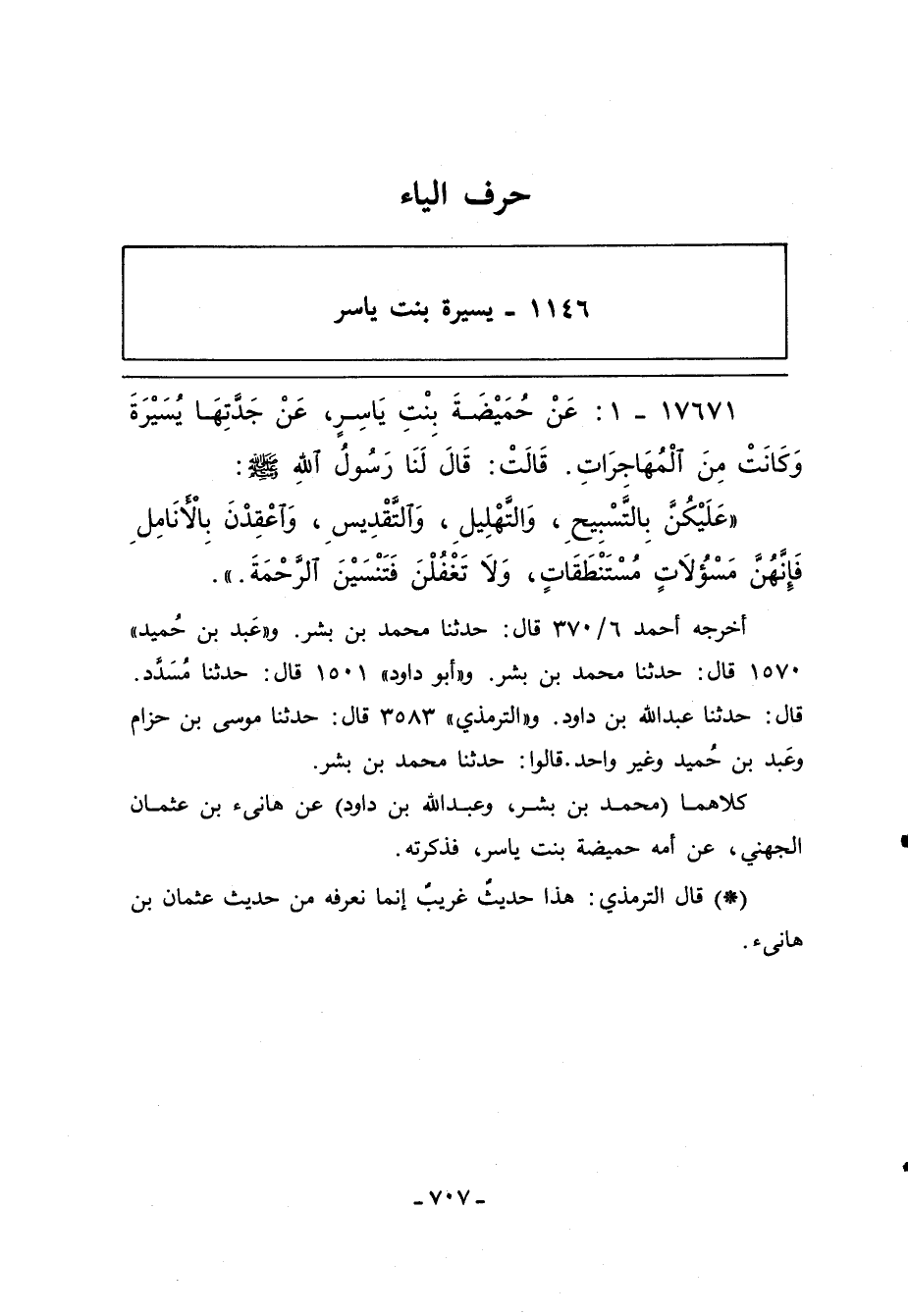 - قال الترمذي: هذا حديث غريب انما نعرفه من حديث عثمان بن هانئ.