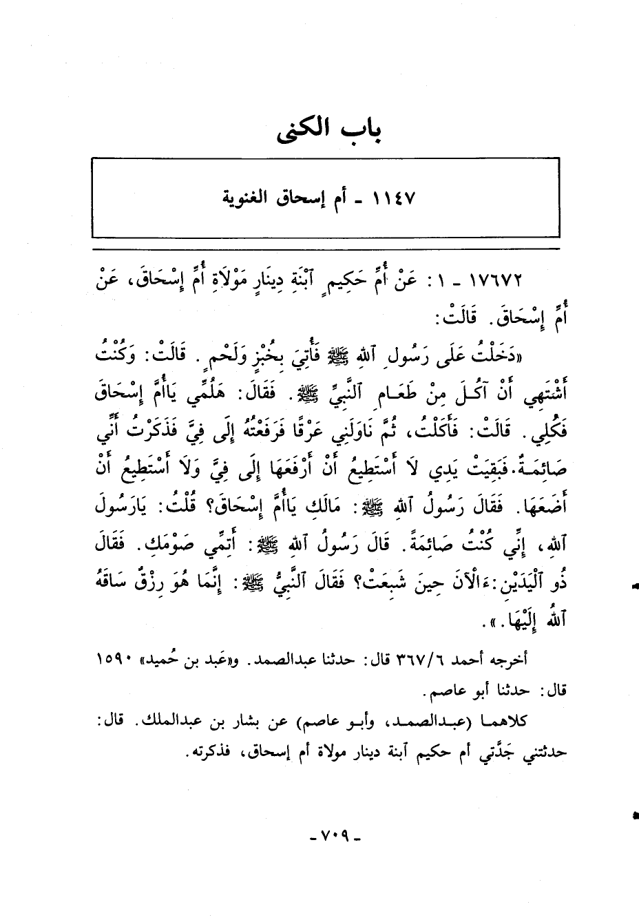 ١٧٦٧٢ - عَنْ أم حَكِيمٍ ابْنَةِ دِينَارٍ مَوْلاةِ أم إسحاق، عَنْ أم إسحاق. قَالَتْ: