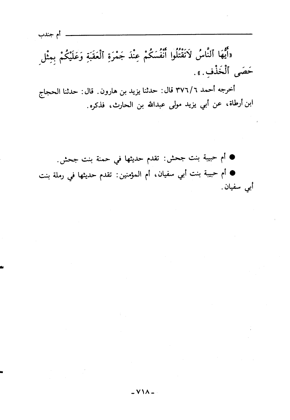 - أم حبيبة بنت جحش: تقدم حديثها في حمنة بنت جحش.