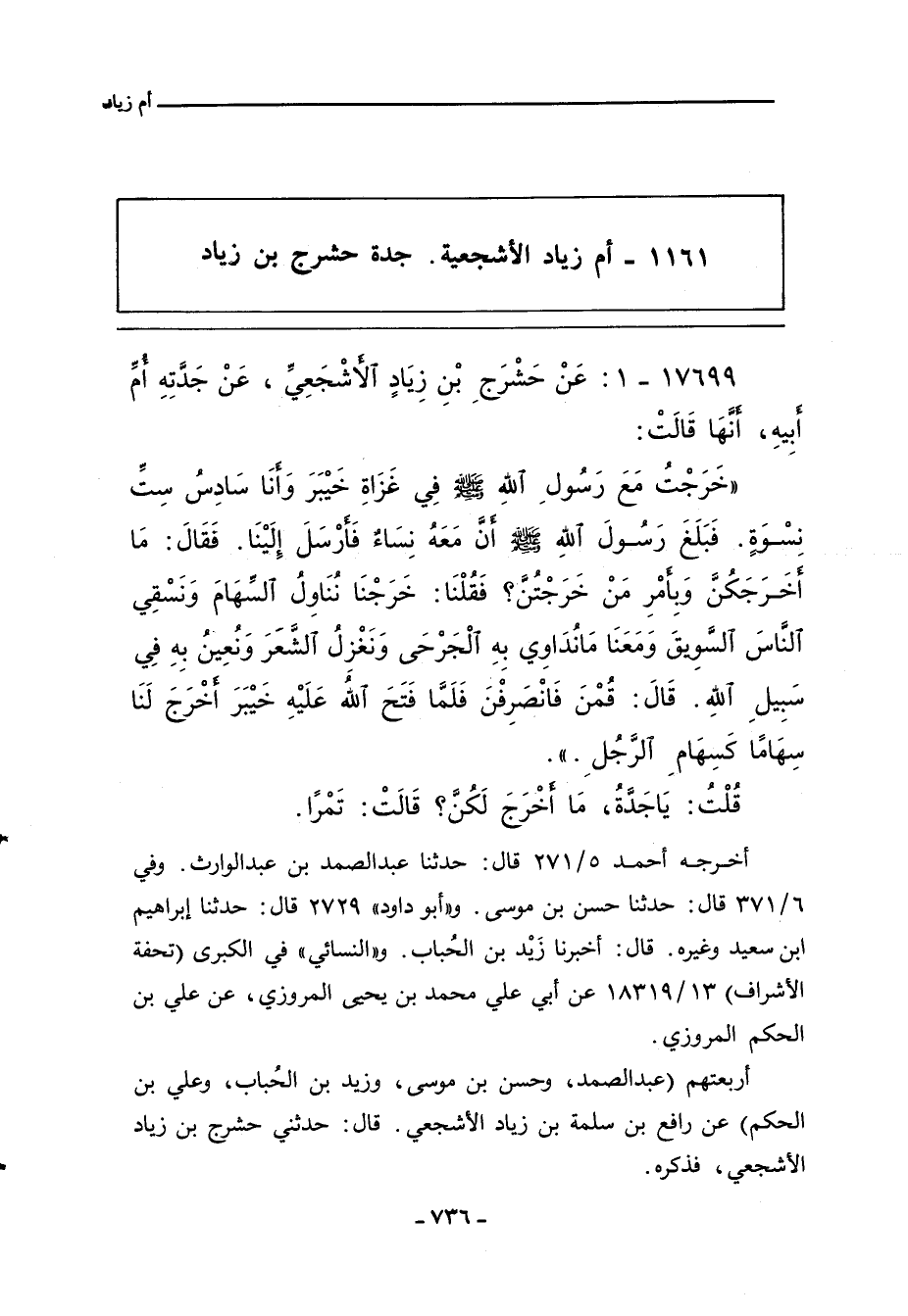١١٦١ - أم زياد الأشجعية. جدة حشرج بن زياد