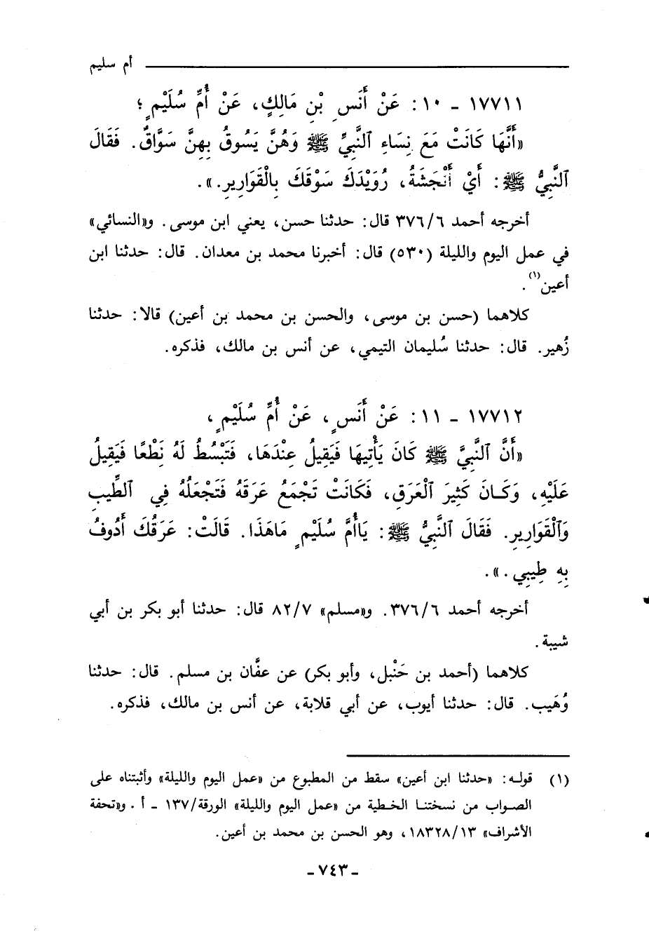١٧٧١٢ - عَنْ أَنَسٍ، عَنْ أم سُلَيْمٍ،