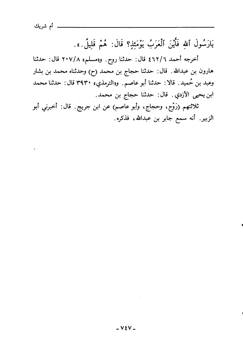 أخرجه أحمد ٦/ ٤٦٢ قال: حدثنا روح. و"مسلم" ٨/ ٢٠٧ قال: حدثنا هارون بن عَبد اللهِ، قال: حدثنا حجاج بن محمد (ح) وحدثناه محمد بن بشار وعبد بن حُميد. قالا: حدثنا أبو عاصم. و"التِّرمِذي" ٣٩٣٠ قال: حدثنا محمد بن يحيى الازدي، قال: حدثنا حجاج بن محمد.