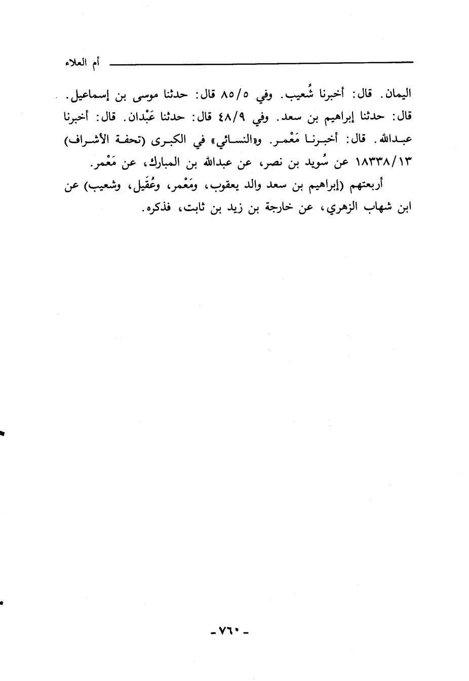 اليمان، قال: أخبرنا شُعيب. وفي ٥/ ٨٥ قال: حدثنا موسى بن إسماعيل، قال: حدثنا إبراهيم بن سعد. وفي ٩/ ٤٨ قال: حدثنا عَبْدان، قال: أخبرنا عبد الله، قال: أخبرنا مَعْمر. و"النَّسائي" في "الكبرى" (تحفة الاشراف) ١٣/ ١٨٣٣٨ عن سُويد بن نصر، عن عبد الله بن المبارك، عن مَعْمر.