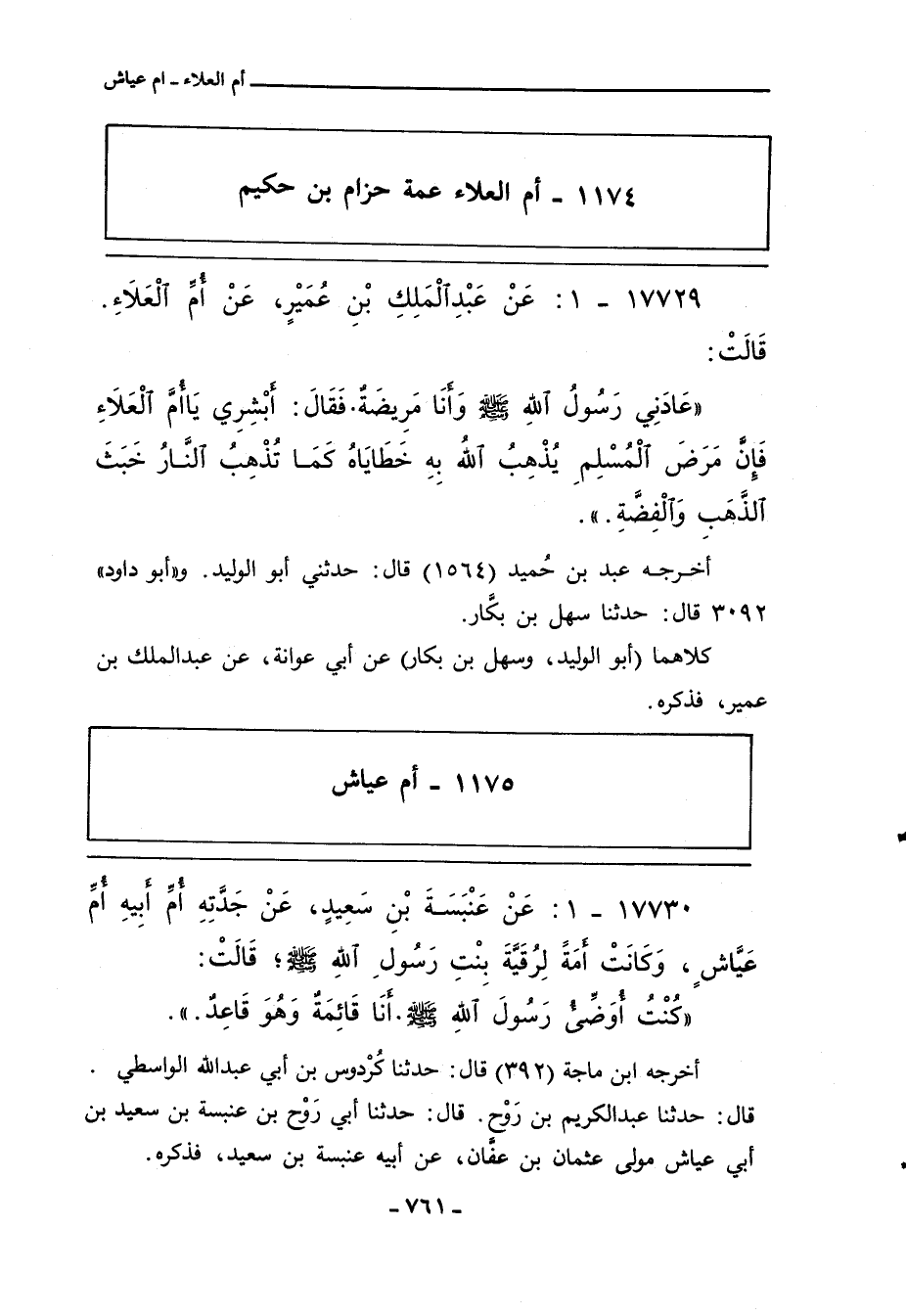 ١١٧٤ - أم العلاء عمة حزام بن حكيم