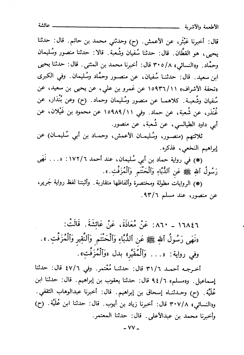 - في رواية حماد بن أبي سُليمان، عند أحمد ٦/ ١٧٢:. . . نَهَى رَسُولُ اللهِ صلى الله عليه وسلم عَنِ الدُّبَّاءِ وَالْحَنْتَمِ وَالْمُزَفَّتِ.