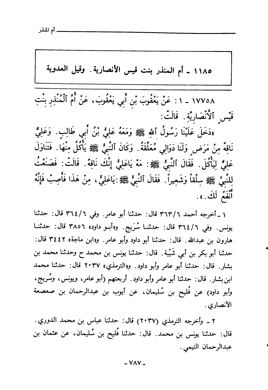 ١١٨٥ - أم المنذر بنت قيس الأنصارية. وقيل العدوية