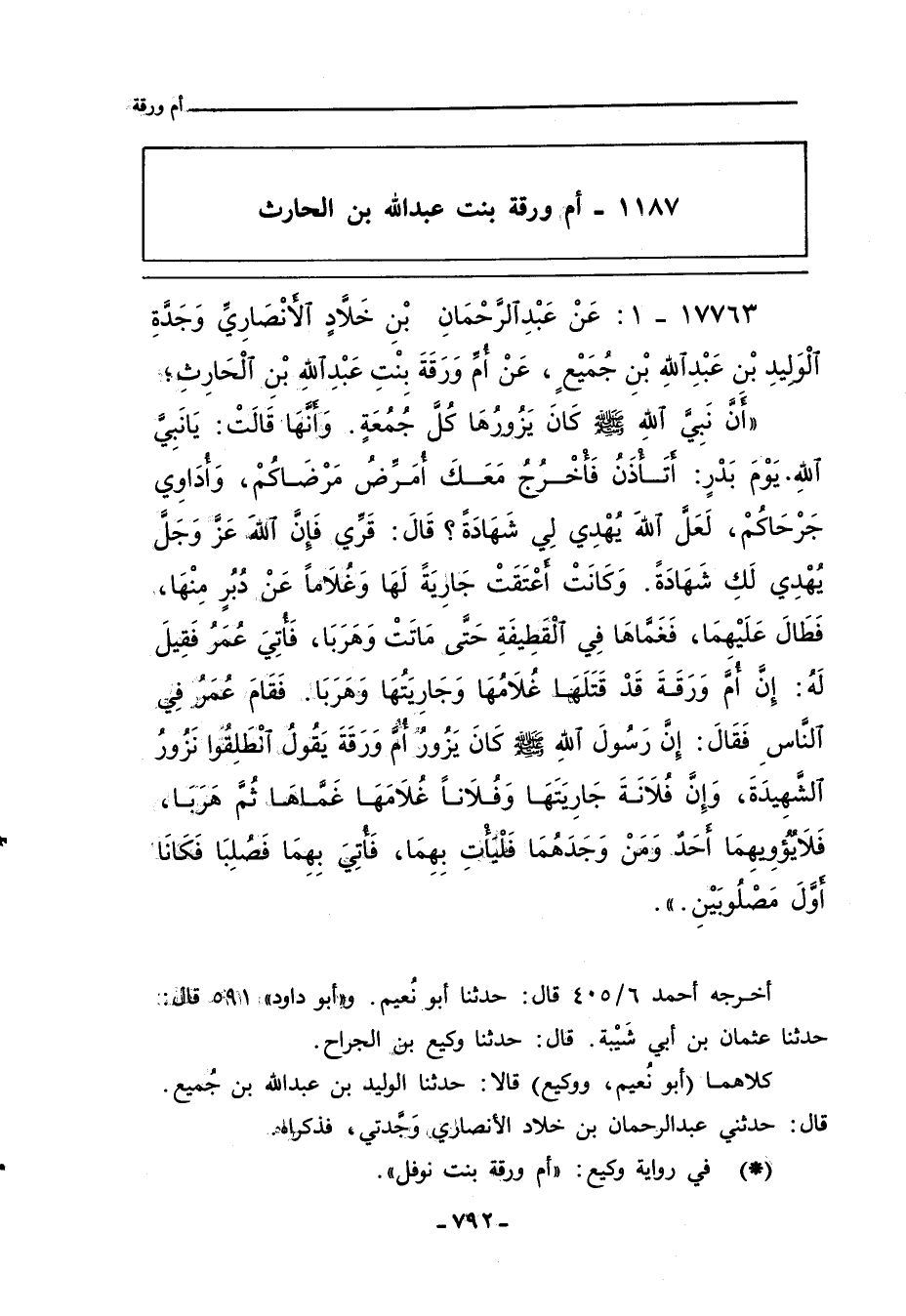 ١١٨٧ - أم ورقة بنت عَبد اللهِ بن الحارث