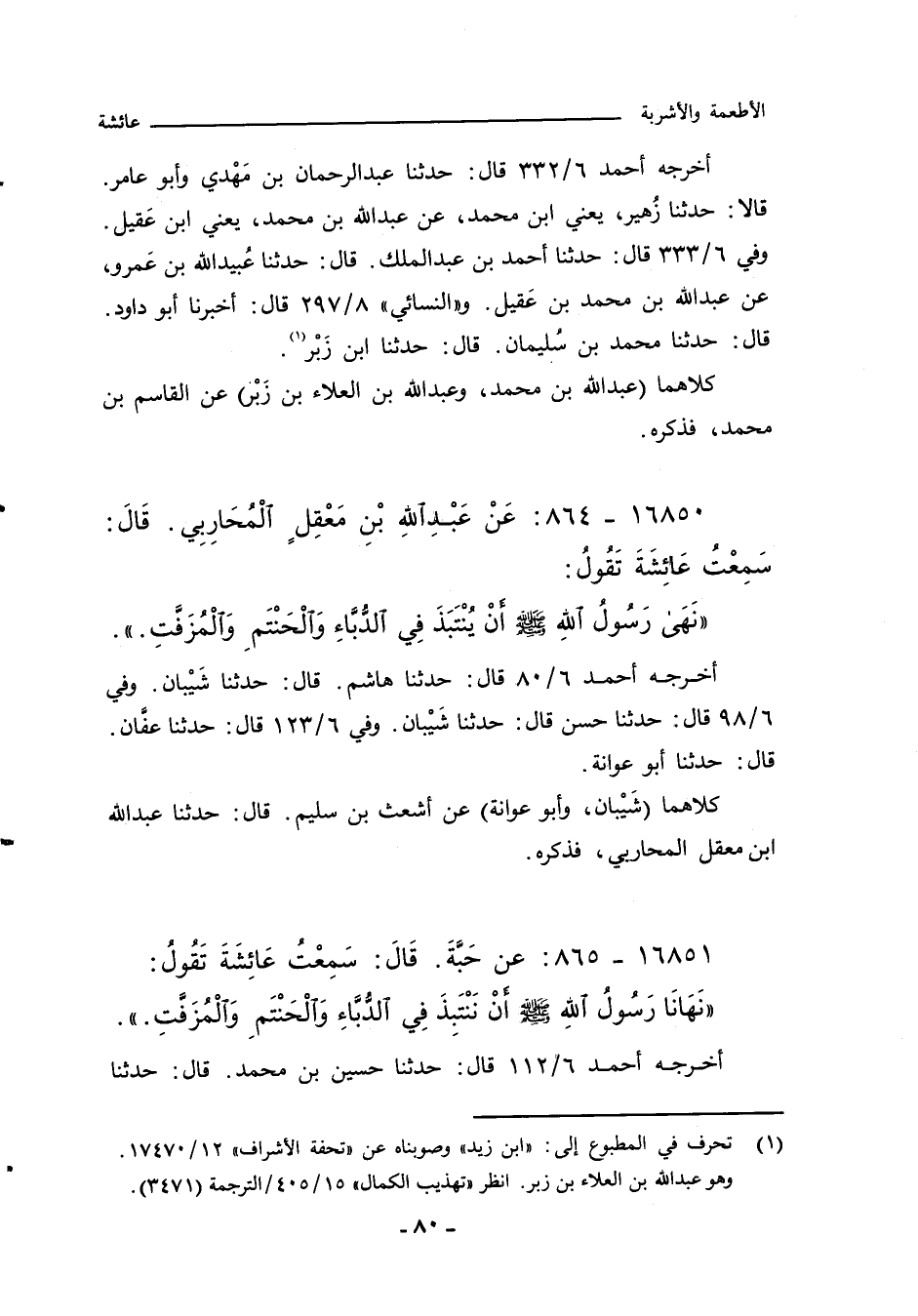 نَهَى رَسُولُ اللهِ صلى الله عليه وسلم انْ يُنْتَبَذَ فِي الدُّبَّاءِ وَالْحَنْتَمِ وَالْمُزَفَّتِ.
