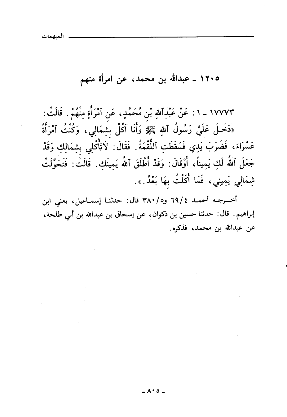١٢٠٥ - عبد الله بن محمد، عن امرأة منهم