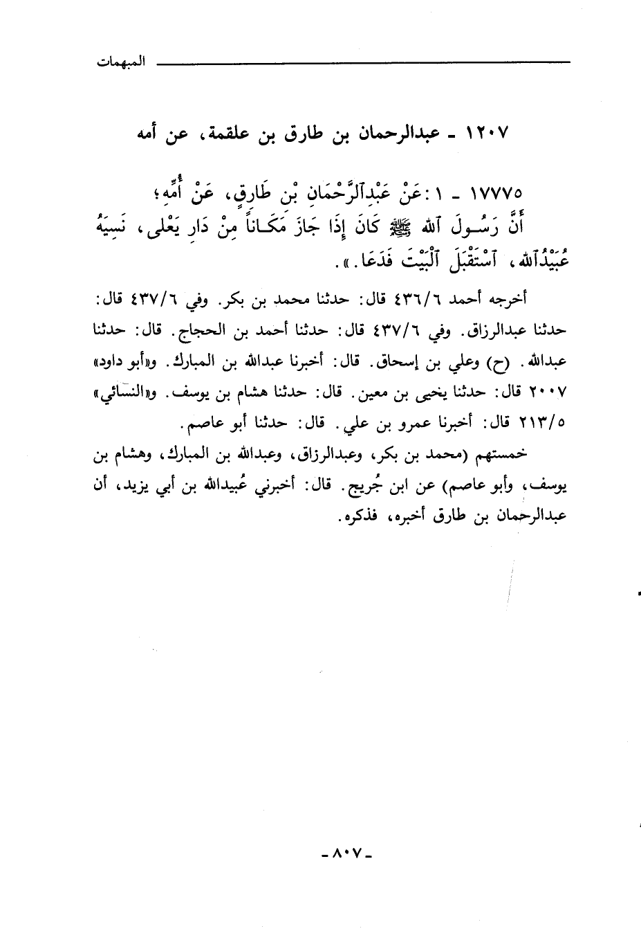 ١٢٠٧ - عبد الرحمن بن طارق بن علقمة، عن أمه
