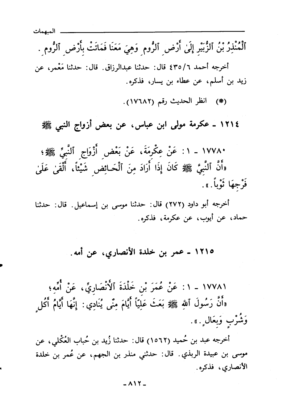 ١٧٧٨٠ - عَنْ عِكْرِمَةَ، عَنْ بَعْضِ ازْوَاجِ النَّبيِّ صلى الله عليه وسلم؛