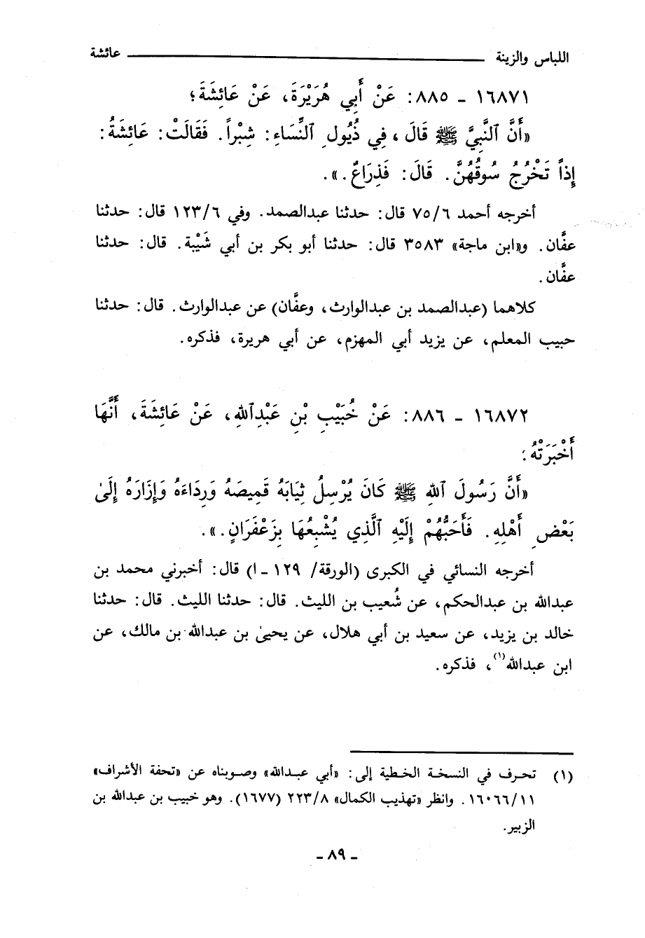 أخرجه أحمد ٦/ ٧٥ قال: حدثنا عبد الصمد. وفي ٦/ ١٢٣ قال: حدثنا عفان. و (اابن ماجة) ٣٥٨٣ قال: حدثنا، أبو بكر بن أبي شَيْبة. قال: حدثنا عفان.