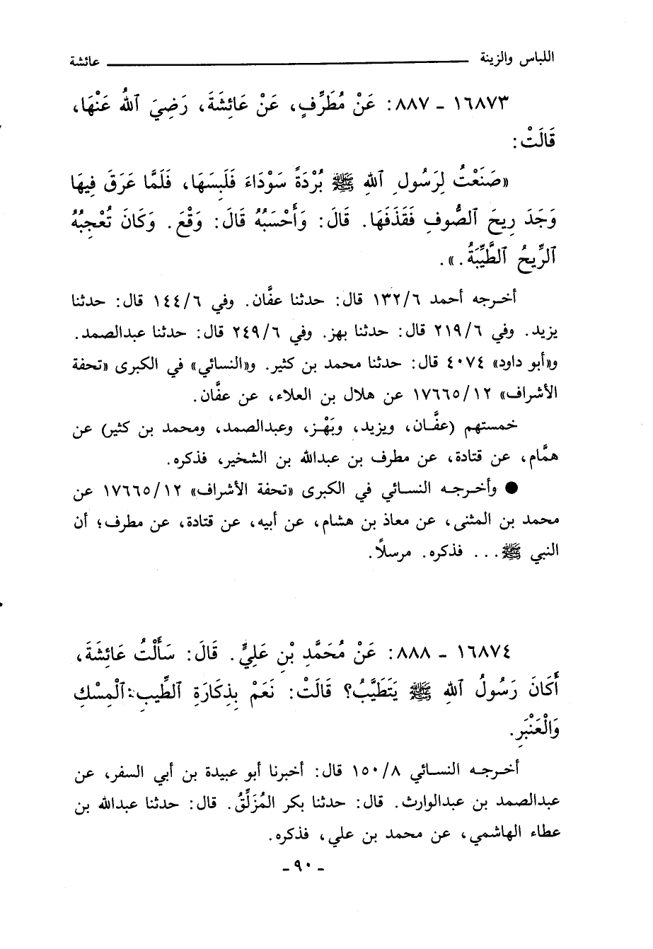 ١٦٨٧٣ - عَنْ مُطَرِّفٍ عَنْ عَائِشَةَ - رَضِىَ اللَّهُ عَنْهَا - قَالَتْ:
