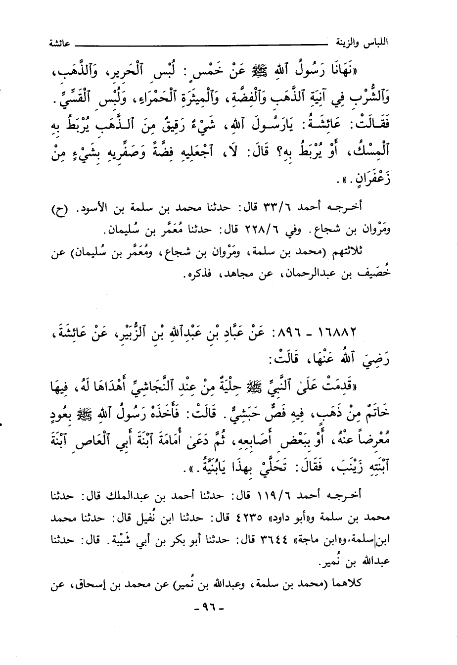 أخرجه أحمد ٦/ ١١٩ قال: حدثنا أحمد بن عبد الملك قال: حدثنا محمد بن سلمة. و"أبو داود" ٤٢٣٥ قال: حدثنا ابن نُفيل قال: حدثنا محمد ابن سلمة. و"ابن ماجة" ٣٦٤٤ قال: حدثنا أبو بكر بن أبي شَيْبة. قال: حدثنا عبد اللهّ بن نُمير.