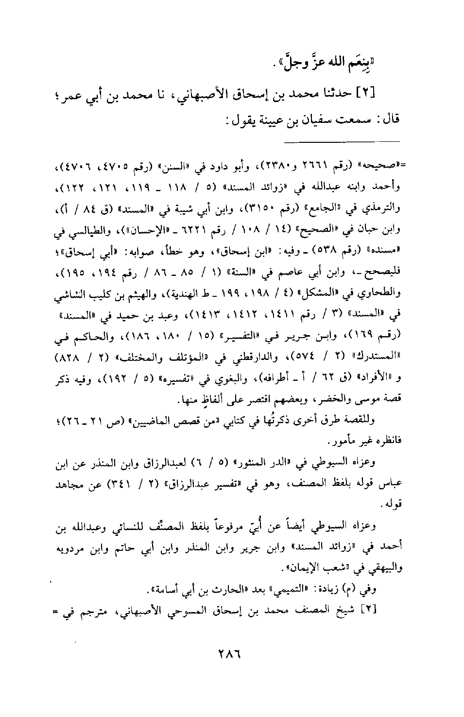 2 - حَدَّثَنَا مُحَمَّدُ بْنُ إِسْحَاقَ الْأَصْبَهَانِيُّ، نَا مُحَمَّدُ بْنُ أَبِي عُمَرَ؛ قَالَ: سَمِعْتُ سُفْيَانَ بْنَ عُيَيْنَةَ يَقُولُ: -[287]- يُستَحَبُّ لِلرَّجُلِ إِذَا دَعَا أَنْ يَقُولَ فِي دُعَائِهِ: اللهُمَّ! اسْتُرْنَا بِسِتْرِكَ الْجَمِيلِ، قَالَ سُفْيَانُ: وَمَعْنَى السِّتْرِ الْجَمِيلِ: أَنْ يَسْتُرَ عَلَى عَبْدِهِ فِي الدُّنْيَا ثُمَّ يَسْتُرَ عَلَيْهِ فِي الآخرة من غير أني يُوَبِّخَهُ عَلَيْهِ.