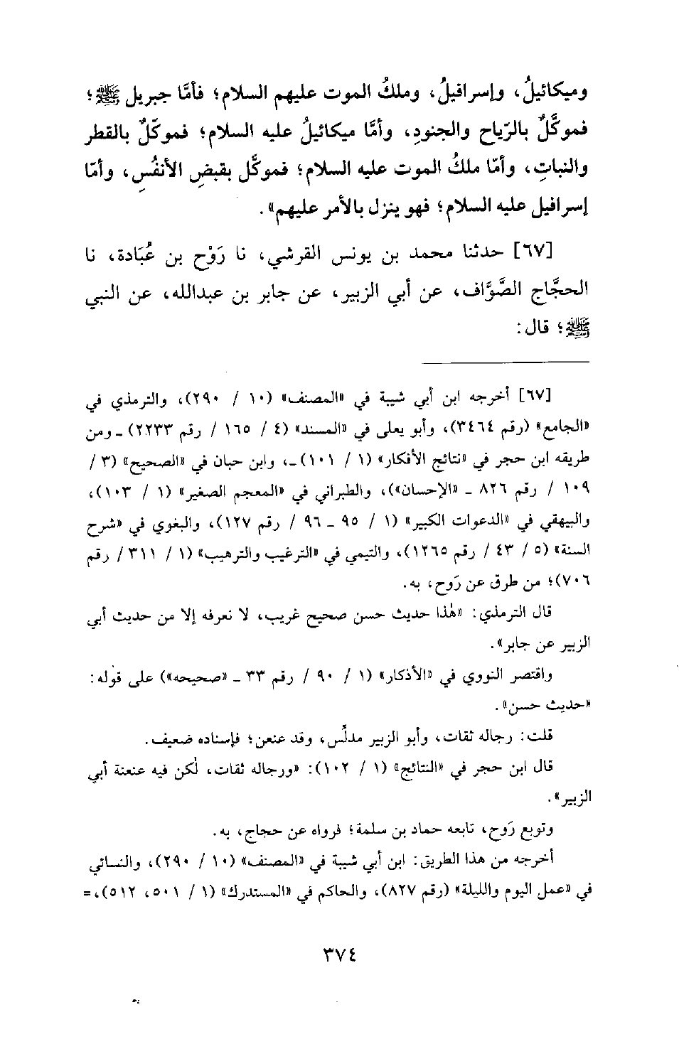 67 - حَدَّثَنَا مُحَمَّدُ بْنُ يُونُسَ الْقُرَشِيُّ، نَا رَوْحُ بْنُ عُبَادَةَ، نَا الْحَجَّاجُ الصَّوَّافُ، عَنْ أَبِي الزُّبَيْرِ، عَنْ جَابِرِ بْنِ عَبْدِ اللهِ، عَنِ النَّبِيِّ صَلَّى اللَّهُ عَلَيْهِ وَسَلَّمَ؛ قَالَ -[376]-: «مَنْ قَالَ: سُبْحَانَ اللهِ الْعَظِيمِ وَبِحَمْدِهِ؛ غُرِسَتْ لَهُ نَخْلَةٌ فِي الْجَنَّةِ»