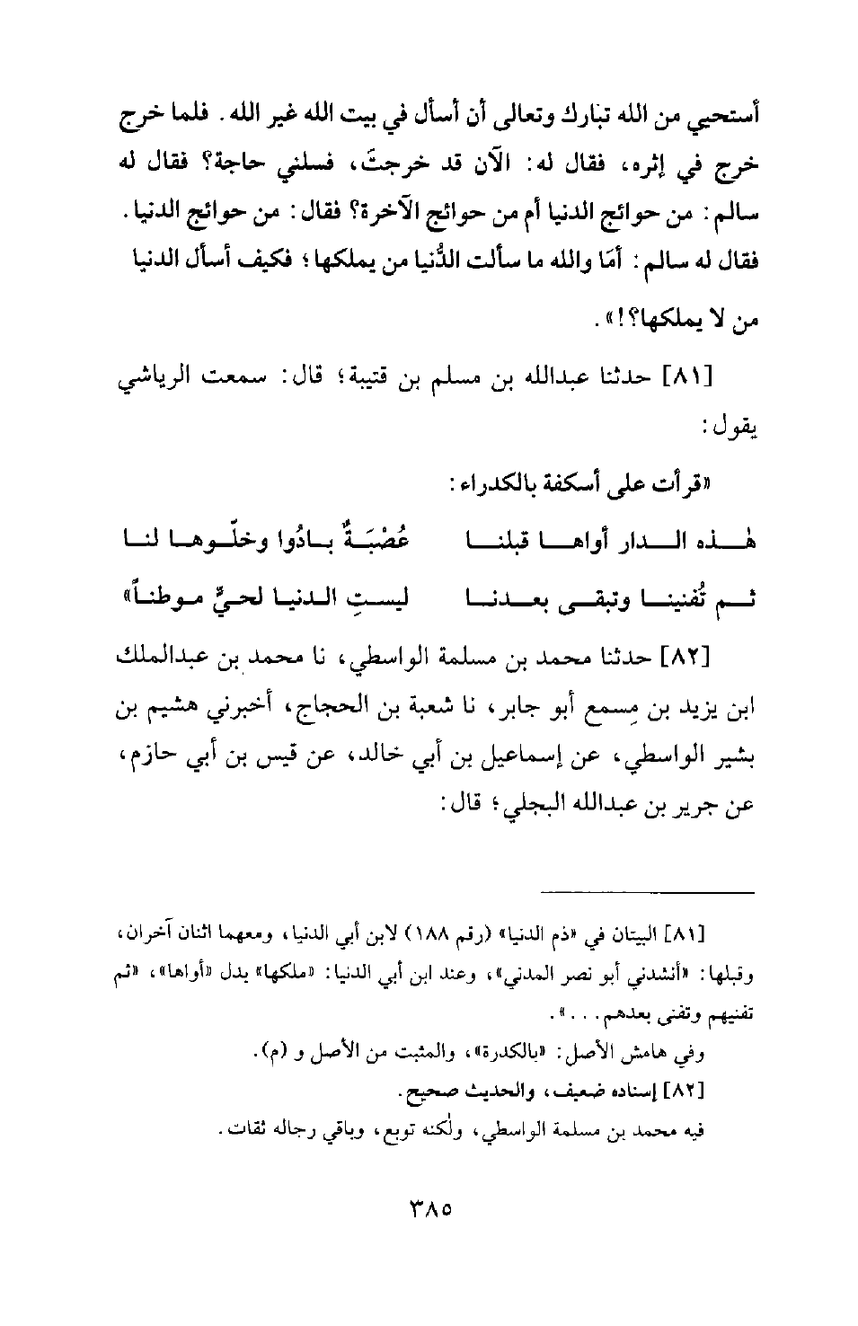 81 - حَدَّثَنَا عَبْدُ اللهِ بْنُ مُسْلِمِ بْنِ قُتَيْبَةَ، قَالَ: سَمِعْتُ الرِّيَاشِيَّ يَقُولُ: قَرَأْتُ عَلَى أَسْكَفَةَ بِالْكَدْرَاءِ: