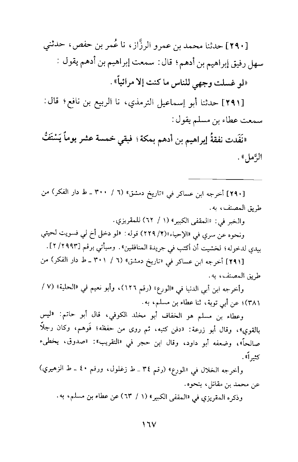 290 - حَدَّثَنَا مُحَمَّدُ بْنُ عَمْرٍو الرَّزَّازُ، نَا عُمَرُ بْنُ حَفْصٍ، حَدَّثَنِي سَهْلٌ رَفِيقُ إِبْرَاهِيمَ بْنِ أَدْهَمَ؛ قَالَ: سَمِعْتُ إِبْرَاهِيمَ بْنَ أَدْهَمَ يَقُولُ: لَوْ غَسَلْتُ وَجْهِي لِلنَّاسِ مَا كُنْتُ إِلَّا مُرَائِيًا.