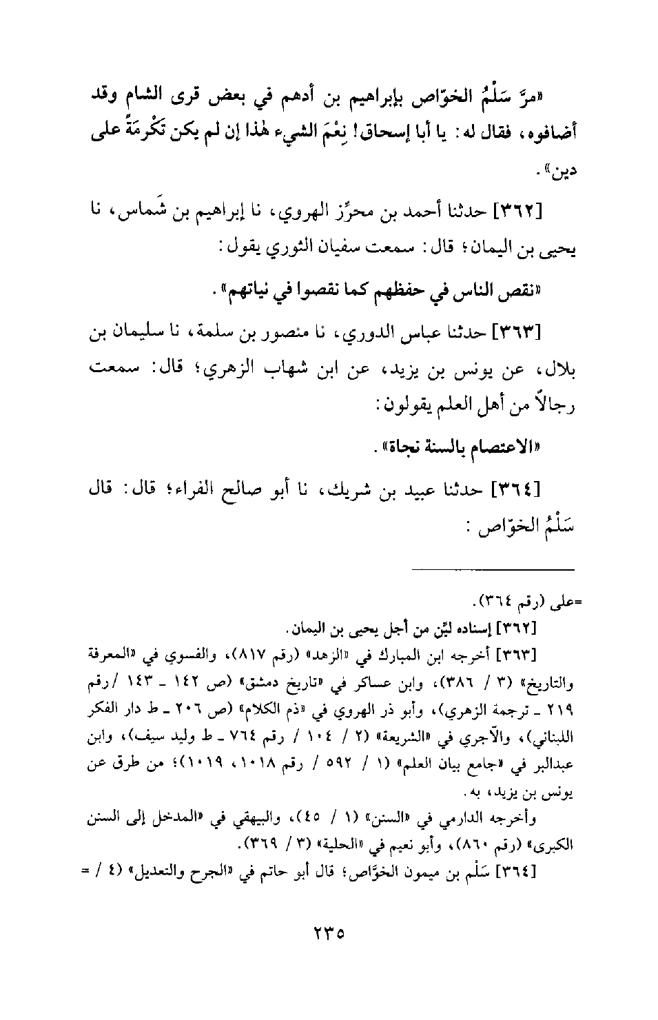 363 - حَدَّثَنَا عَبَّاسٌ الدُّورِيُّ، نَا مَنْصُورُ بْنُ سَلَمَةَ، نَا سُلَيْمَانُ بْنُ بِلَالٍ، عَنْ يُونُسَ بْنِ يَزِيدَ، عَنِ ابْنِ شِهَابٍ الزُّهْرِيِّ؛ قَالَ: سَمِعْتُ رِجَالًا مِنْ أَهْلِ الْعِلْمِ يَقُولُونَ: الِاعْتِصَامُ بِالسُّنَّةِ نَجَاةٌ.