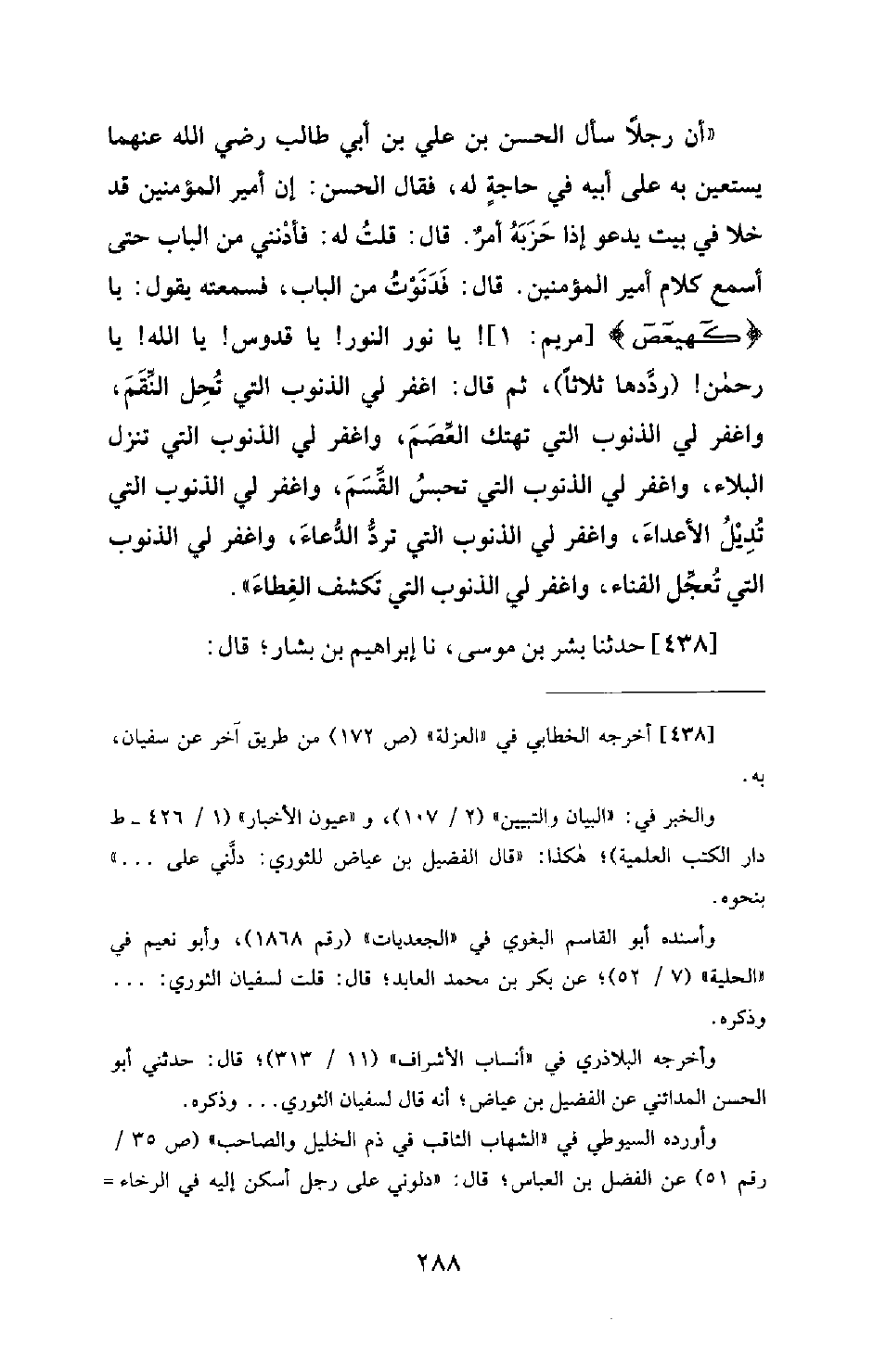438 - حَدَّثَنَا بِشْرُ بْنُ مُوسَى، نَا إِبْرَاهِيمُ بْنُ بَشَّارٍ؛ قَالَ: -[289]- سَأَلْتُ سُفْيَانَ بْنَ عُيَيْنَةَ، فَقُلْتُ لَهُ: دُلَّنِي عَلَى جَلِيسٍ أَجْلِسُ إِلَيْهِ. فَقَالَ: تِلْكَ ضَالَّةٌ لَا تُوجَدُ.