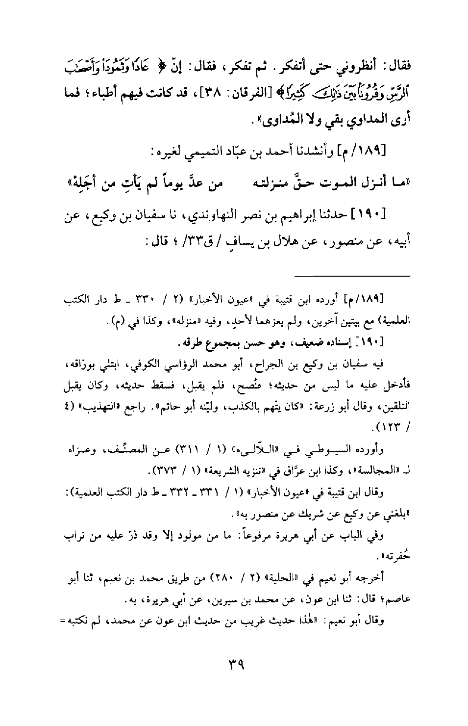190 - حَدَّثَنَا إِبْرَاهِيمُ بْنُ نَصْرٍ النُّهَاوَنْدِيُّ، نَا سُفْيَانُ بْنُ وَكِيعٍ، عَنْ أَبِيهِ، عَنْ مَنْصُورٍ، عَنْ هِلَالِ بْنِ يَسَافٍ؛ قَالَ: -[45]- مَا مِنْ مَوْلُودٍ يُولَدُ إِلَّا وَفِي سُرَّتِهِ مِنْ تُرْبَةِ الْأَرْضِ الَّتِي يَمُوتُ فِيهَا