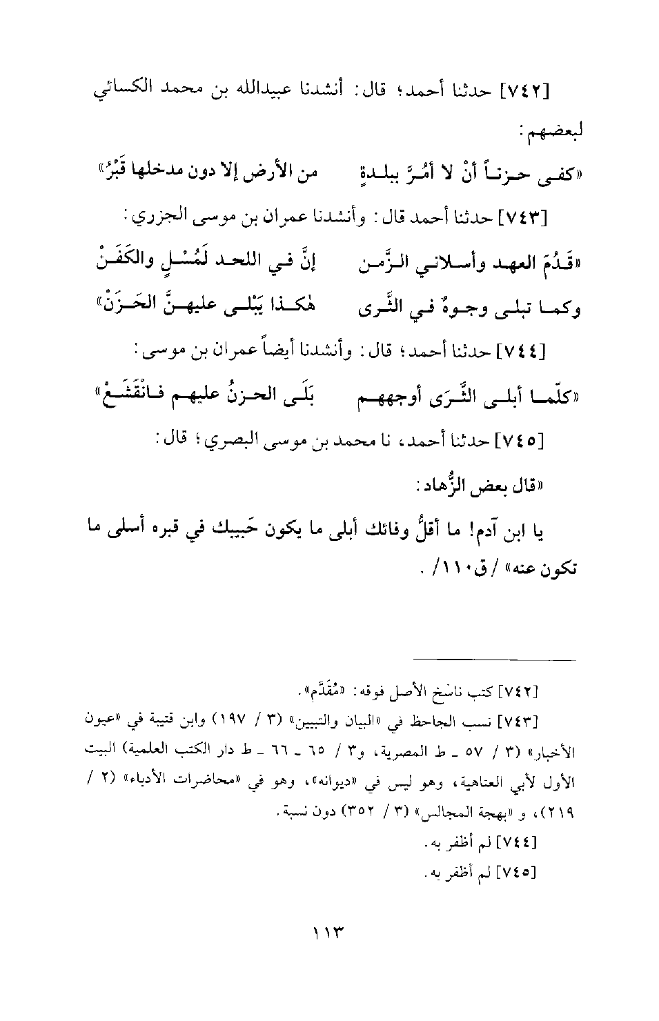 744 - حَدَّثَنَا أَحْمَدُ؛ قَالَ: وَأَنْشَدَنَا أَيْضًا عِمْرَانُ بْنُ مُوسَى:
