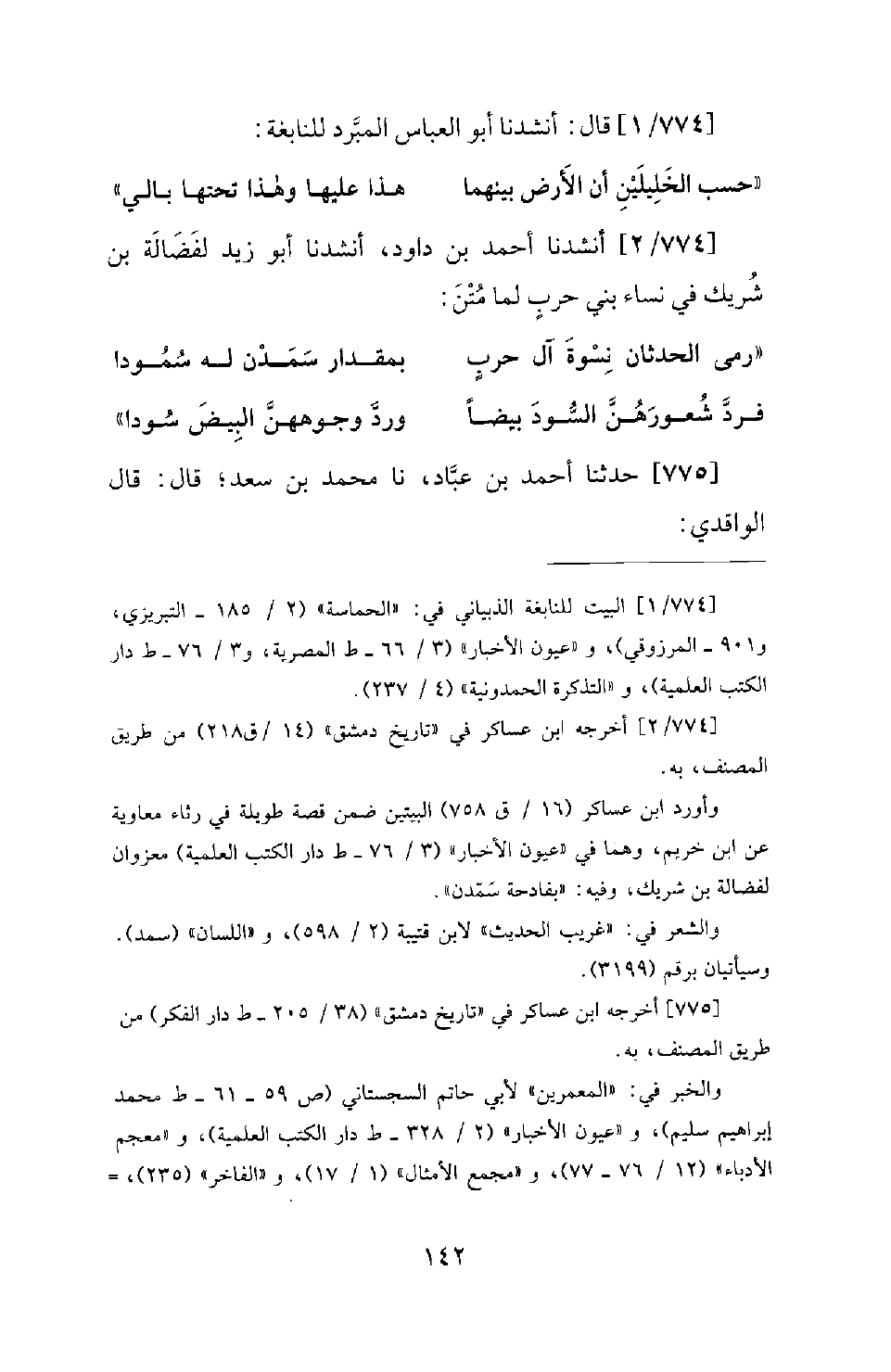 774 - / 1 - قَالَ: أَنْشَدَنَا أَبُو الْعَبَّاسِ الْمُبَرِّدُ لِلنَّابِغَةِ: