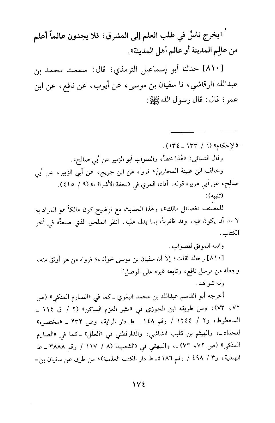 810 - حَدَّثَنَا أَبُو إِسْمَاعِيلَ التِّرْمِذِيُّ؛ قَالَ: سَمِعْتُ مُحَمَّدَ بْنَ عَبْدِ اللهِ الرَّقَاشِيَّ، نَا سُفْيَانُ بْنُ مُوسَى، عَنْ أَيُّوبَ، عَنْ نَافِعٍ، عَنِ ابْنِ عُمَرَ؛ قَالَ: قَالَ رَسُولُ اللهِ -[180]- صَلَّى اللَّهُ عَلَيْهِ وَسَلَّمَ. «مَنِ اسْتَطَاعَ مِنْكُمْ أَنْ يَمُوتَ فِي الْمَدِينَةِ؛ فَلْيَفْعَلْ؛ فَإِنَّهُ مَنْ مَاتَ بِالْمَدِينَةِ شَفَعْتُ لَهُ يَوْمَ الْقِيَامَةِ»