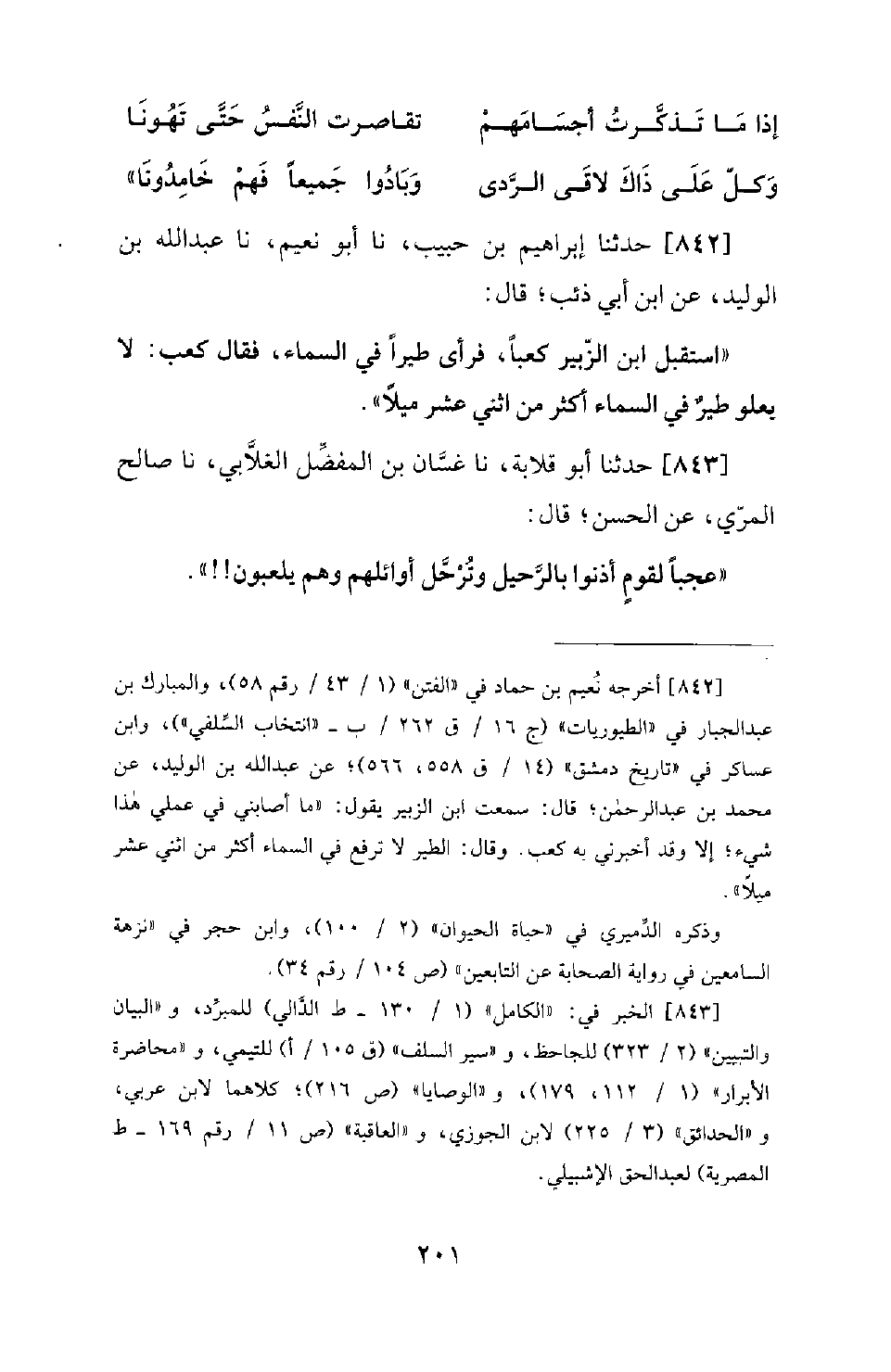 843 - حَدَّثَنَا أَبُو قِلَابَةَ، نَا غَسَّانُ بْنُ الْمُفَضَّلِ الْغَلَّابِيُّ، نَا صَالِحٌ الْمُرِّيُّ، عَنِ الْحَسَنِ؛ قَالَ: عَجَبًا لِقَوْمٍ أُذِنُوا بِالرَّحِيلِ وَتَرَحَّلَ أَوَائِلُهُمْ وَهُمْ يَلْعَبُونَ! !