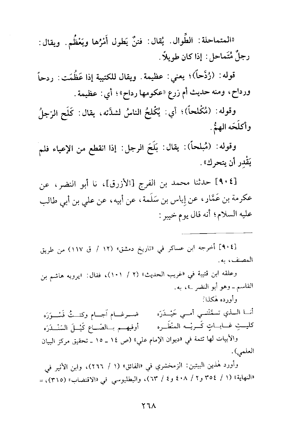 904 - حَدَّثَنَا مُحَمَّدُ بْنُ الْفَرَجِ [الْأَزْرَقُ] ، نَا أَبُو النَّضْرِ، عَنْ عِكْرِمَةَ بْنِ عَمَّارٍ، عَنْ إِيَاسِ بْنِ سَلَمَةَ، عَنْ أَبِيهِ، عَنْ عَلِيِّ بْنِ أَبِي طالب عليه السلام؛ أَنَّهُ قَالَ يَوْمَ خَيْبَرَ -[269]-: