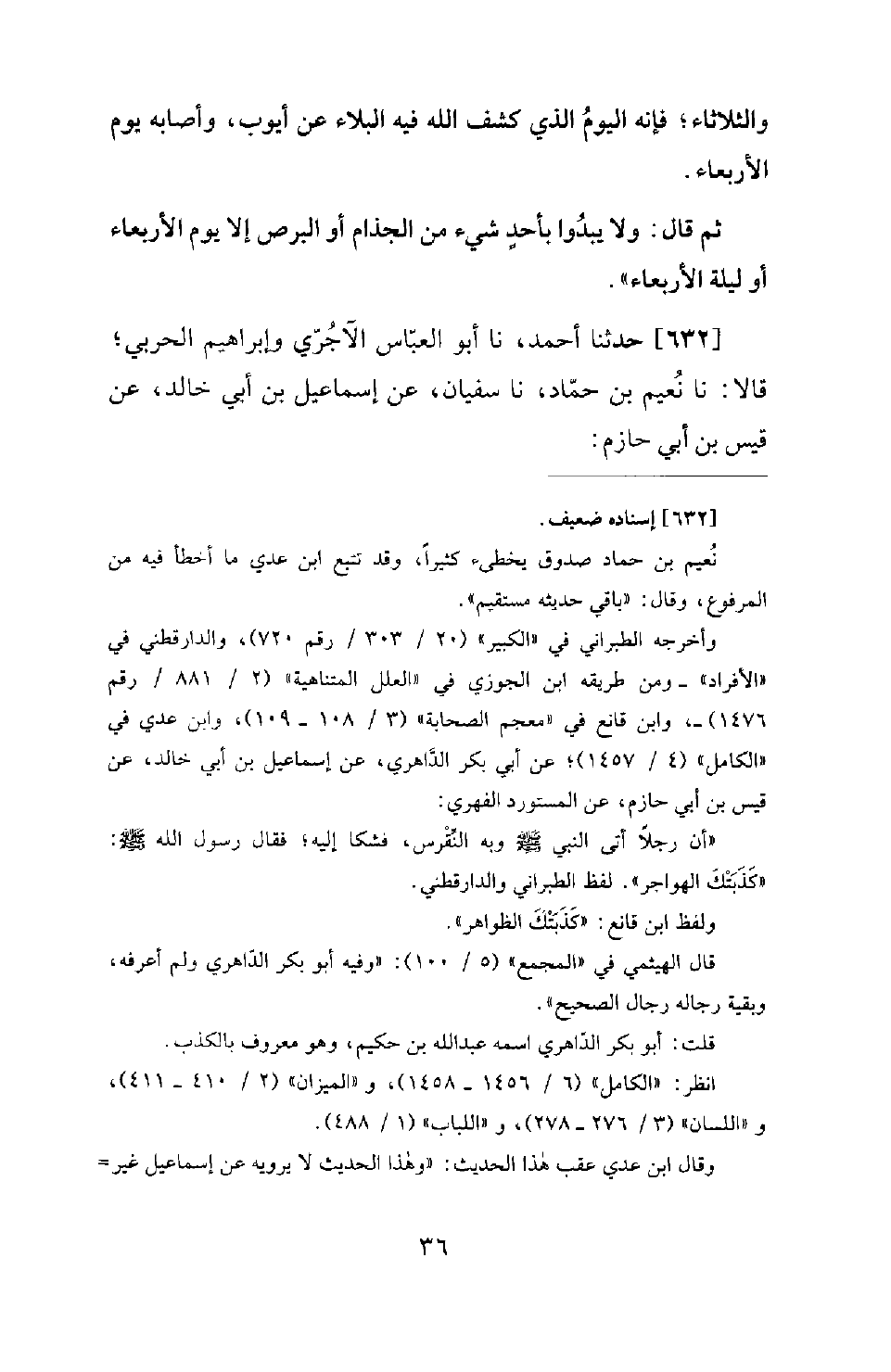 632 - حَدَّثَنَا أَحْمَدُ، نَا أَبُو الْعَبَّاسِ الآجُرِّيُّ وَإِبْرَاهِيمَ الْحَرْبِيُّ؛ قَالَا: نَا نُعَيْمُ بْنُ حَمَّادٍ، نَا سُفْيَانُ، عَنْ إِسْمَاعِيلَ بْنِ أَبِي خَالدٍ، عَنْ قَيْسِ بْنِ أَبِي حَازِمٍ: -[37]- أَنَّ رَجُلًا أَتَى عُمَرَ بْنَ الْخَطَّابِ رَضِيَ اللهُ عَنْهُ يَشْكُو إِلَيْهِ النِّقْرِسَ، فَقَالَ: كَذَبَتْكَ الظَّهَائِرُ