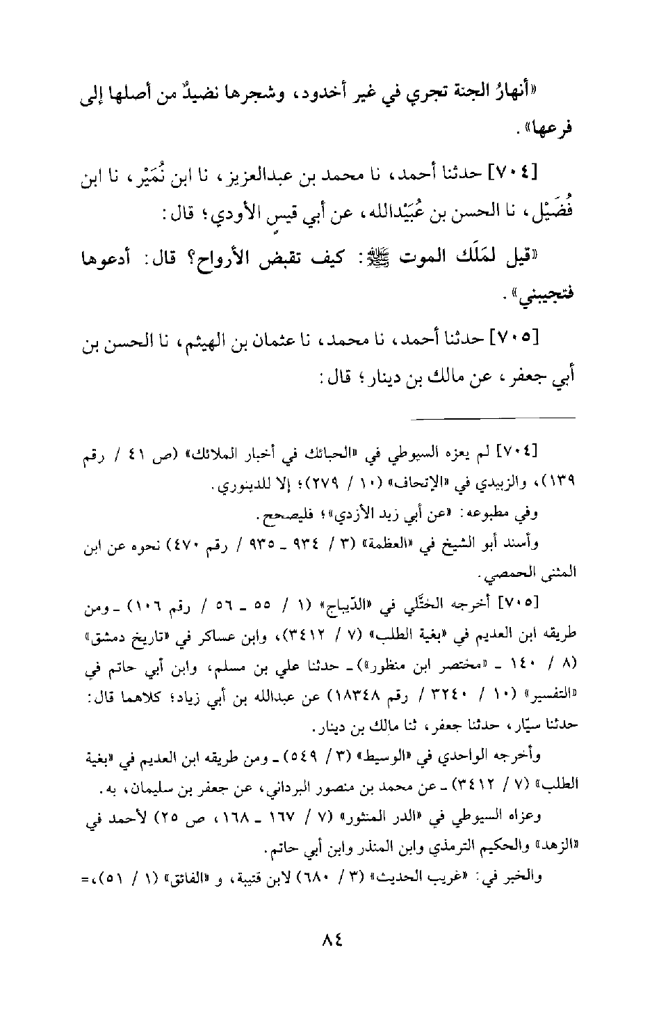 704 - حَدَّثَنَا أَحْمَدُ، نَا مُحَمَّدُ بْنُ عَبْدِ الْعَزِيزِ، نَا ابْنُ نُمَيْرٍ، نَا ابنُ فُضَيْلٍ، نَا الْحَسَنُ بْنُ عُبَيْدِ اللهِ، عَنْ أَبِي قَيْسٍ الْأَوْدِيِّ؛ قَالَ: قِيلَ لِمَلَكِ الْمَوْتِ صَلَّى اللَّهُ عَلَيْهِ وَسَلَّمَ: كَيْفَ تَقْبِضُ الْأَرْوَاحَ؟ قَالَ: أَدْعُوهَا فَتُجِيبُنِي.