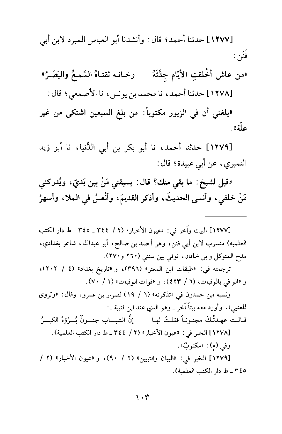 1277 - حَدَّثَنَا أَحْمَدُ؛ قَالَ: وَأَنْشَدَنَا أَبُو الْعَبَّاسِ الْمُبَرِّدِ لِابْنِ أَبِي فَنَنٍ: