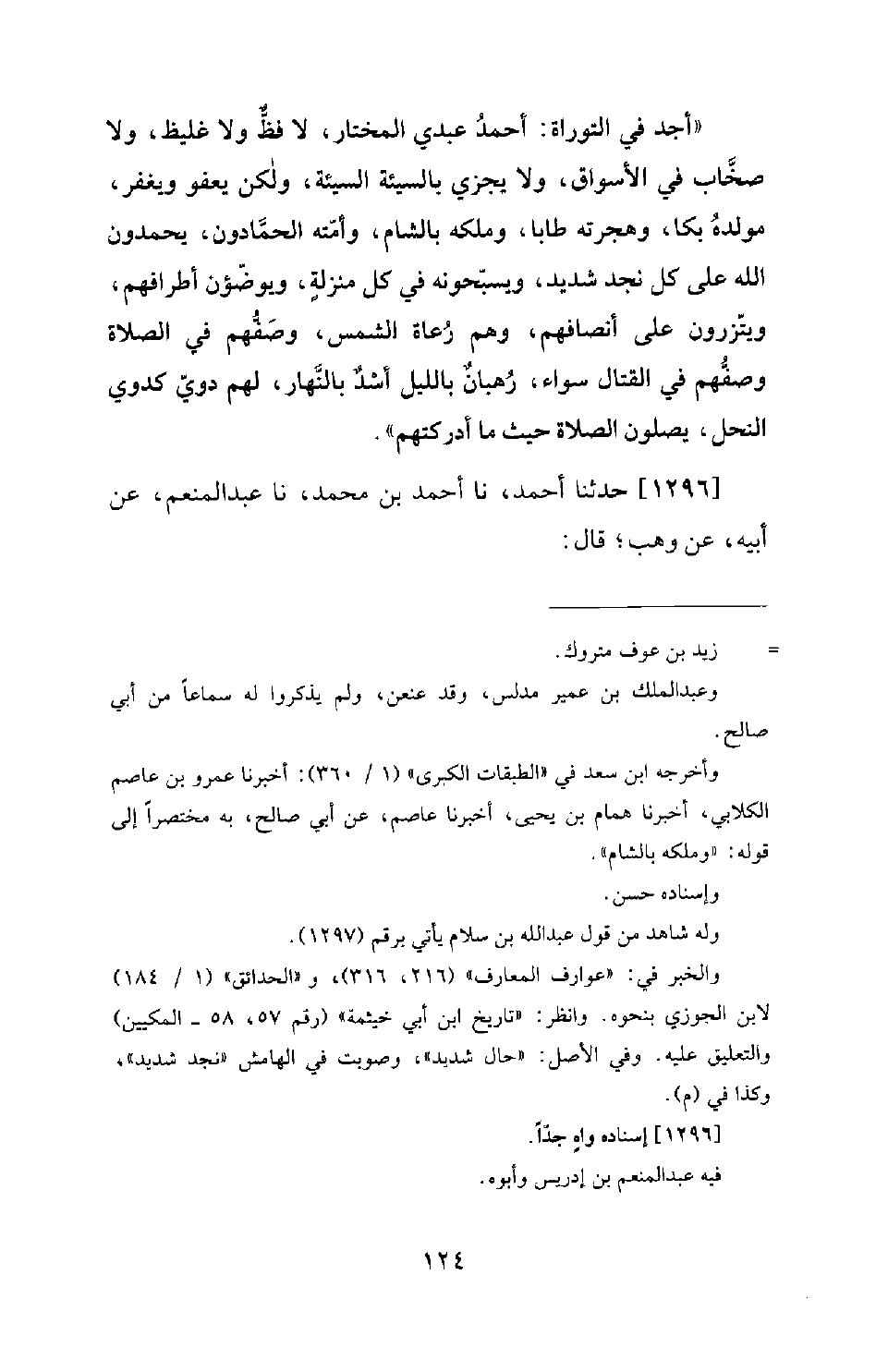 1296 - حَدَّثَنَا أَحْمَدُ، نَا أَحْمَدُ بْنُ مُحَمَّدٍ، نَا عَبْدُ الْمُنْعِمِ، عَنْ أَبِيهِ، عَنْ وَهْبٍ؛ قَالَ: -[126]- أَوْحَى الله عَزَّ وَجَلَّ إِلَى آدَمَ [صَلَّى اللَّهُ عَلَيْهِ وَسَلَّمَ] : أَنَا اللهُ ذُو بَكَّةَ، أَهْلُهَا خِيرَتِي، وَزُوَّارُهَا وَفْدِي وَأَضْيَافِي، وَفِي كَنَفِي، أُعَمِّرُهُ بِأَهْلِ السَّمَاءِ وَأَهْلِ الْأَرْضِ، يَأْتُونَهُ أَفْوَاجًا شُعْثًا غُبْرًا، يَعِجُّونَ بِالتَّكْبِيرِ عَجِيجًا، وَيَرُجُّونَ بِالتَّلْبِيَةِ رَجِيجًا، وَيَثُجُّونَ بِالْبُكَاءِ ثَجِيجًا، فَمَنِ اعْتَمَدَهُ لا يُرِيدُ غَيْرَهُ؛ فَقَدْ زَارَنِي وَضَافَنِي وَوَفَدَ إِلَيَّ وَنَزَلَ بِي، وَحُقَّ لِي أَنْ أُتْحِفَهُ بِكَرَامَتِي، أَجْعَلُ ذَلِكَ الْبَيْتَ وَذِكْرَهُ وَشَرَفَهُ وَمَجْدَهُ وَسَنَاهُ لِنَبِيٍّ مِنْ وَلَدِكَ يُقَالُ لَهُ: إِبْرَاهِيمُ، أَرْفَعُ لَهُ قَوَاعِدَهُ، وَأَقْضِي عَلَى يَدَيْهِ عِمَارَتَهُ، وَأُنِيطُ لَهُ سِقَايَتَهُ، وَأُوَرِّثُهُ حِلَّهُ وَحُرْمَهُ، وَأُعَلِّمُهُ مَشَاعِرَهُ، ثُمَّ تَغْمُرُهُ الْأُمَمُ وَالْقُرُونُ حَتَّى يَنْتَهِيَ إِلَى نَبِيٍّ مِنْ وَلَدِكَ يُقَالُ لَهُ: مُحَمَّدٌ صَلَّى اللَّهُ عَلَيْهِ وَسَلَّمَ، هُوَ خَاتَمُ النَّبِيِّينَ، وَأَجْعَلُهُ مِنْ سُكَّانِهِ وَوُلاتِهِ وَحُجَّابِهِ وَسُقَاتِهِ مِمَّنْ سَأَلَ عَنِّي يَوْمَئِذٍ؛ فَأَنَا مَعَ الشُّعْثِ الْغُبْرِ الْمُوفِينَ بِنُذُورِهِمْ، الْمُقْبِلِينَ إِلَى رَبِّهِمْ
