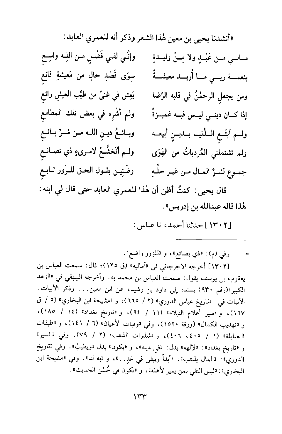 1302 - حَدَّثَنَا أَحْمَدُ، نَا عَبَّاسٌ: -[134]- أَنْشَدَنَا يَحْيَى بْنُ مَعِينٍ هَذَا الشِّعْرَ: