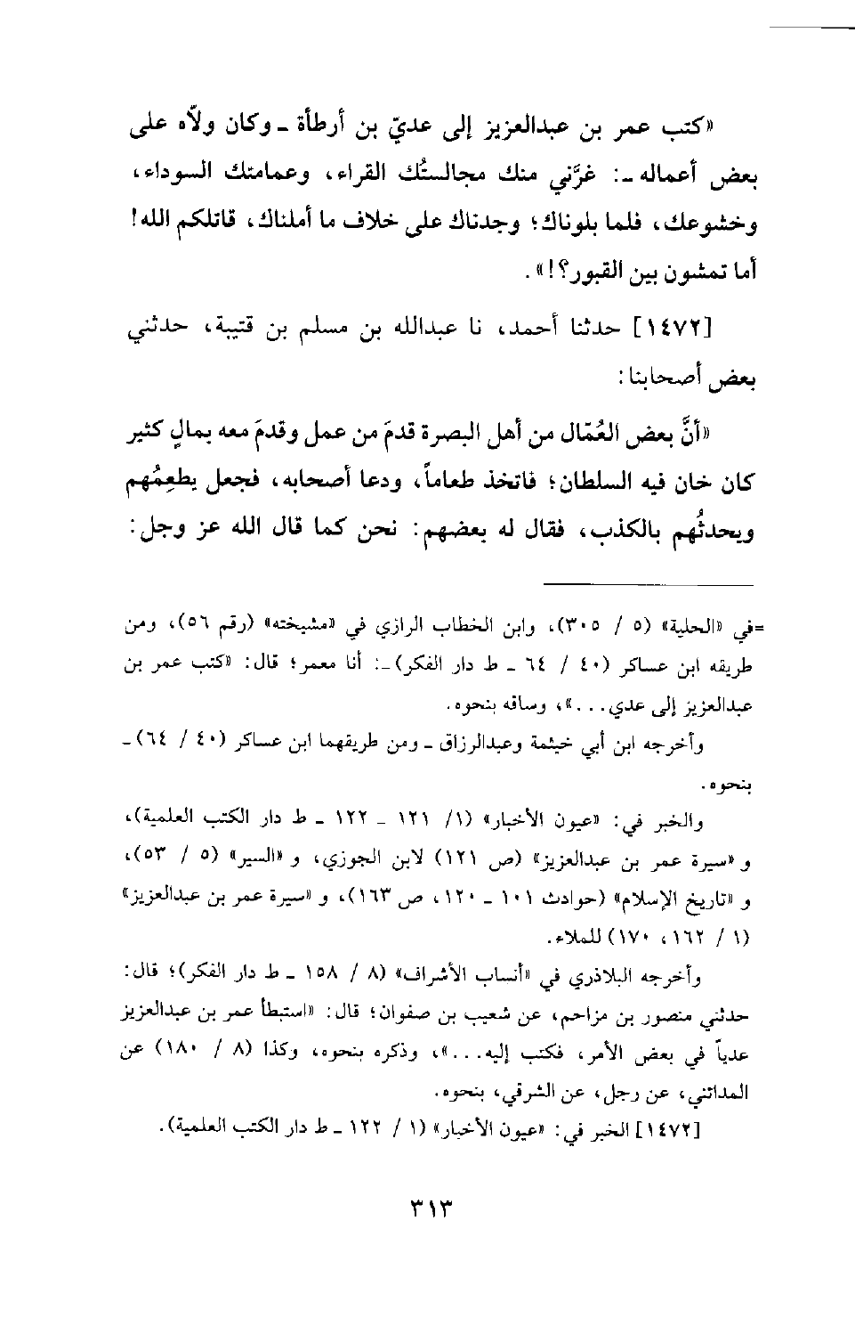 1472 - حَدَّثَنَا أَحْمَدُ، نَا عَبْدُ اللهِ بْنُ مُسْلِمِ بْنِ قُتَيْبَةَ، حَدَّثَنِي بَعْضُ أَصْحَابِنَا: أَنَّ بَعْضَ الْعُمَّالِ مِنْ أَهْلِ الْبَصْرَةِ قَدِمَ مِنْ عَمَلٍ وَقَدِمَ مَعَهُ بِمَالٍ كَثِيرٍ كَانَ خَانَ فِيهِ السُّلْطَانَ؛ فَاتَّخَذَ طَعَامًا، وَدَعَا أَصْحَابَهُ، فَجَعَلَ يُطْعِمُهُمْ وَيُحَدِّثُهُمْ بِالْكَذِبِ، فَقَالَ لَهُ بَعْضُهُمْ: نَحْنُ كَمَا قَالَ اللهُ عَزَّ وَجَلَّ -[314]-: {سَمَّاعُونَ لِلْكَذِبِ أَكَّالُونَ لِلسُّحْتِ} [المائدة: 42] .