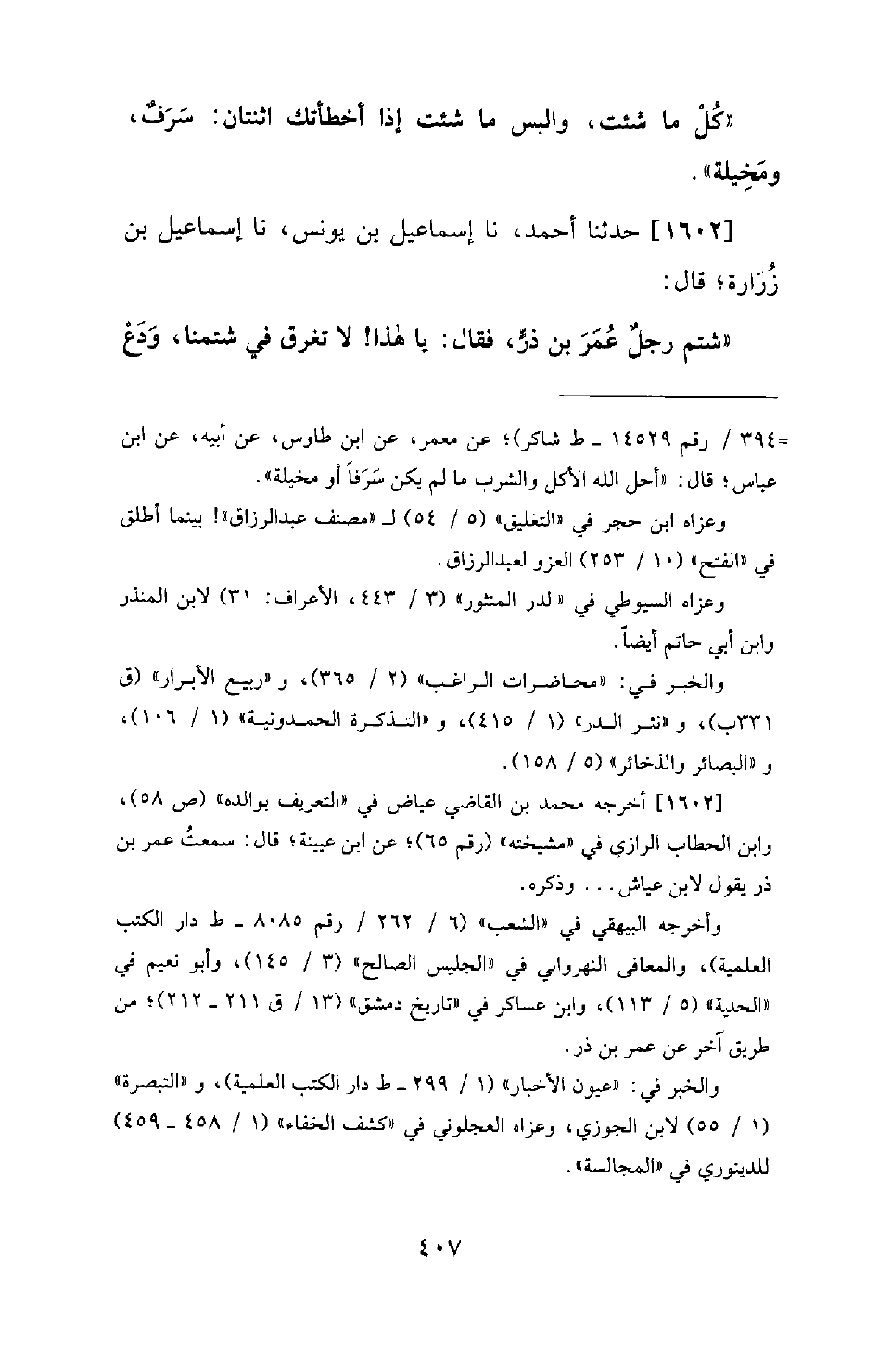 1602 - حَدَّثَنَا أَحْمَدُ، نَا إِسْمَاعِيلُ بْنُ يُونُسَ، نَا إِسْمَاعِيلُ بْنُ زُرَارَةَ؛ قَالَ: شَتَمَ رَجُلٌ عُمَرَ بْنَ ذَرٍّ، فَقَالَ: يَا هَذَا! لا تُغْرِقْ فِي شَتْمِنَا، وَدَعْ -[408]- لِلصُّلْحِ مَوْضِعًا؛ فَإِنِّي أَمُتُّ مُشَاتَمَةَ الرِّجَالِ صَغِيرًا، وَلَمْ أُحِبَّهَا كَبِيرًا، وَإِنِّي لا أُكَافِئُ مَنْ عَصَى اللهَ فِيَّ بِأَكْثَرَ مِنْ أَنْ أُطِيعَ اللهَ فِيهِ.