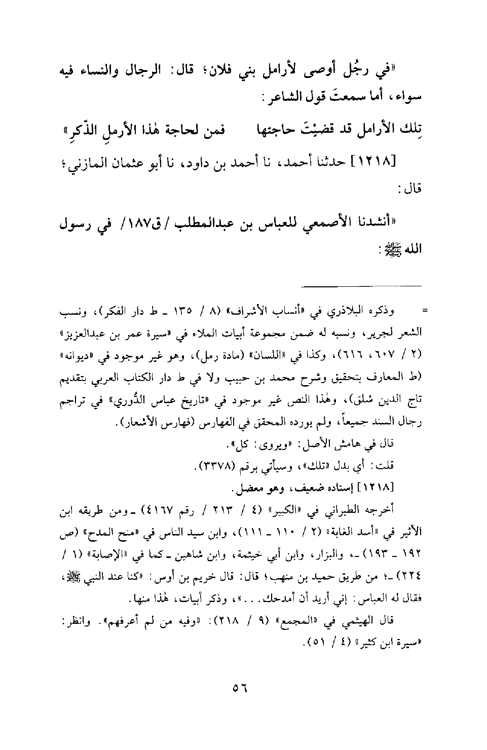 1218 - حَدَّثَنَا أَحْمَدُ، نَا أَحْمَدُ بْنُ دَاوُدَ، نَا أَبُو عُثْمَانَ الْمَازِنِيُّ؛ قَالَ: أَنْشَدَنَا الْأَصْمَعِيُّ لِلْعَبَّاسِ بْنِ عَبْدِ الْمُطَّلِبِ فِي رَسُولِ اللهِ -[57]- صَلَّى اللَّهُ عَلَيْهِ وَسَلَّمَ: