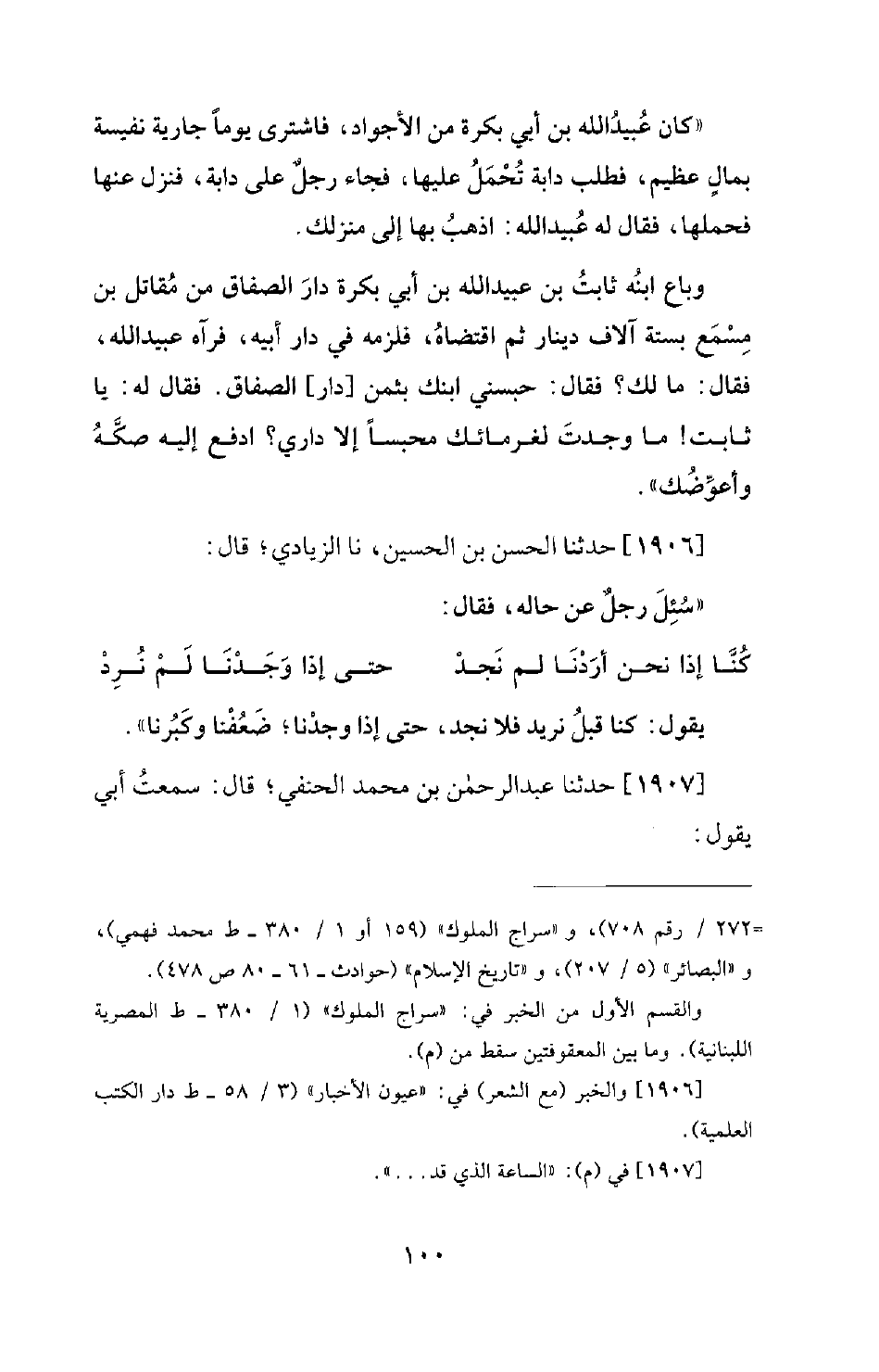 1906 - حَدَّثَنَا الْحَسَنُ بْنُ الْحُسَيْنِ، نَا الزِّيَادِيُّ؛ قَالَ: سُئِلَ رَجُلٌ عَنْ حَالِهِ، فَقَالَ: (كُنَّا إِذَا نَحْنُ أَرَدْنَا لَمْ نَجِدْ ... حَتَّى إِذَا وَجَدْنَا لَمْ نُرِدْ)