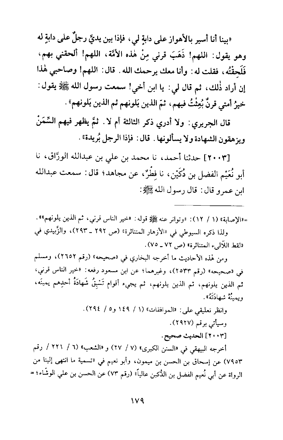 2003 - حَدَّثَنَا أَحْمَدُ، نَا مُحَمَّدُ بْنُ عَلِيِّ بْنِ عَبْدِ اللهِ الْوَرَّاقِ، نَا أَبُو نُعَيْمٍ الْفَضْلُ بْنُ دُكَيْنٍ، نَا فِطْرٌ، عَنْ مُجَاهِدٍ؛ قَالَ: سَمِعْتُ عَبْدَ اللهِ بْنَ عَمْرٍو قَالَ: قَالَ رَسُولُ اللهِ -[181]- صَلَّى اللَّهُ عَلَيْهِ وَسَلَّمَ: «إِنَّ الرَّحِمَ مُعَلَّقَةٌ بالعرش، وليس الواصل بالمكافئ؛ لَكِنَّ الْوَاصِلَ الَّذِي إِذَا انْقَطَعَتْ رَحِمُهُ وَصَلَهَا»