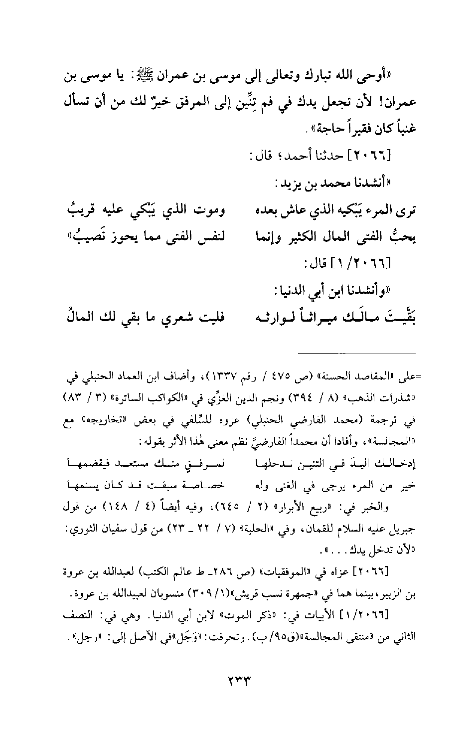 (بَقَّيْتَ مَالَكَ مِيرَاثًا لِوَارِثِهِ ... فَلَيْتَ شِعْرِي مَا بَقَى لَكَ الْمَالُ -[234]-)