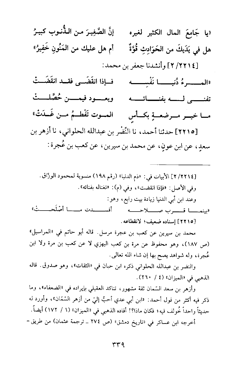 2214 - / 2 - وَأَنْشَدَنَا جَعْفَرُ بْنُ مُحَمَّدٍ: