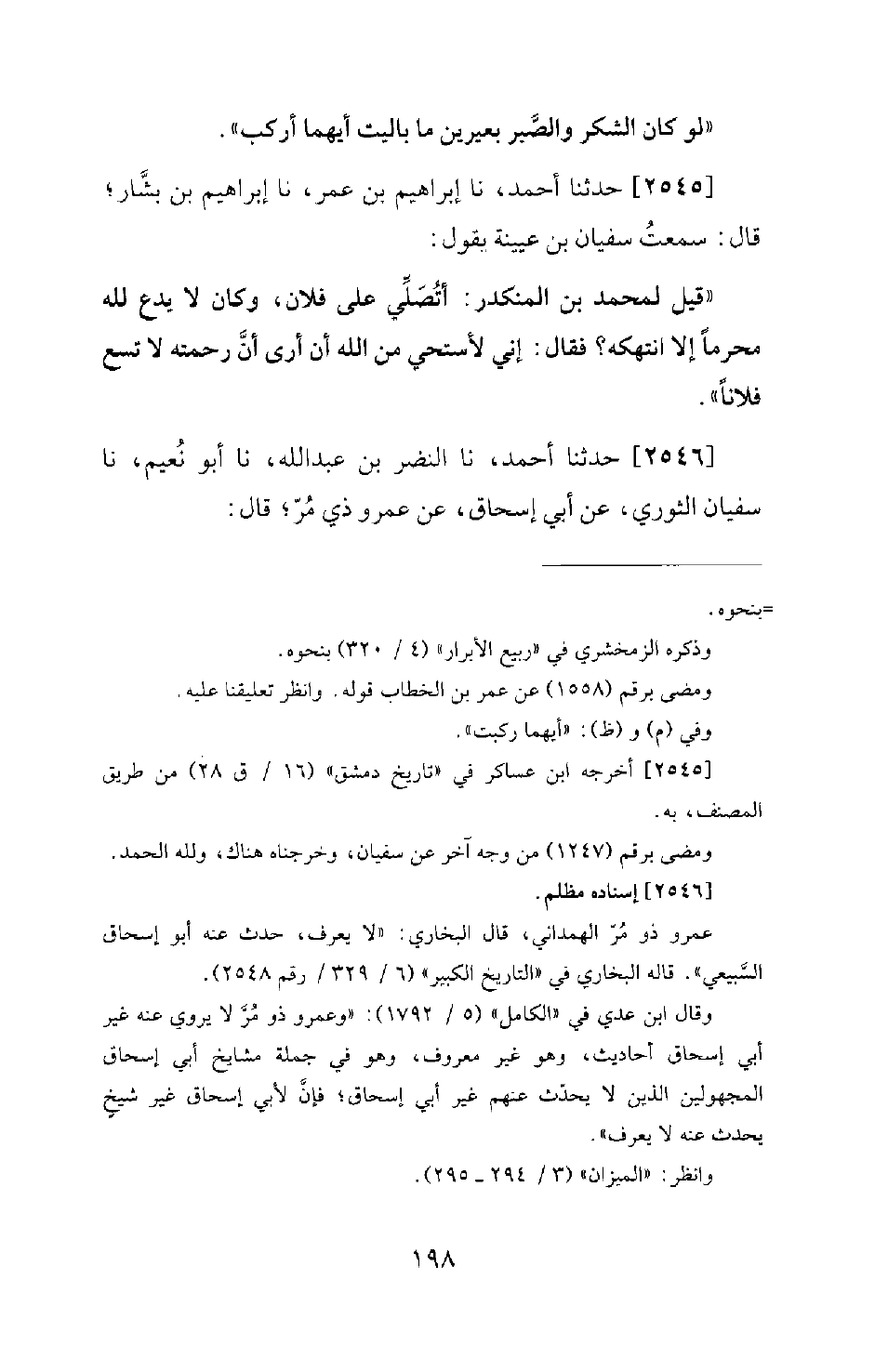 2546 - حَدَّثَنَا أَحْمَدُ، نا النَّضْرُ بْنُ عَبْدِ اللهِ، نا أَبُو نُعَيْمٍ، نا سُفْيَانُ الثَّوْرِيُّ، عَنْ أَبِي إِسْحَاقَ، عَنْ عَمْرِو ذِي مُرٍّ؛ قَالَ: -[199]- كَانَ عَلِيٌّ رَحِمَهُ اللهُ يقرأ: يَقْرَأُ: وَالْعَصْرِ: وَنَوَائِبِ الدَّهْرِ